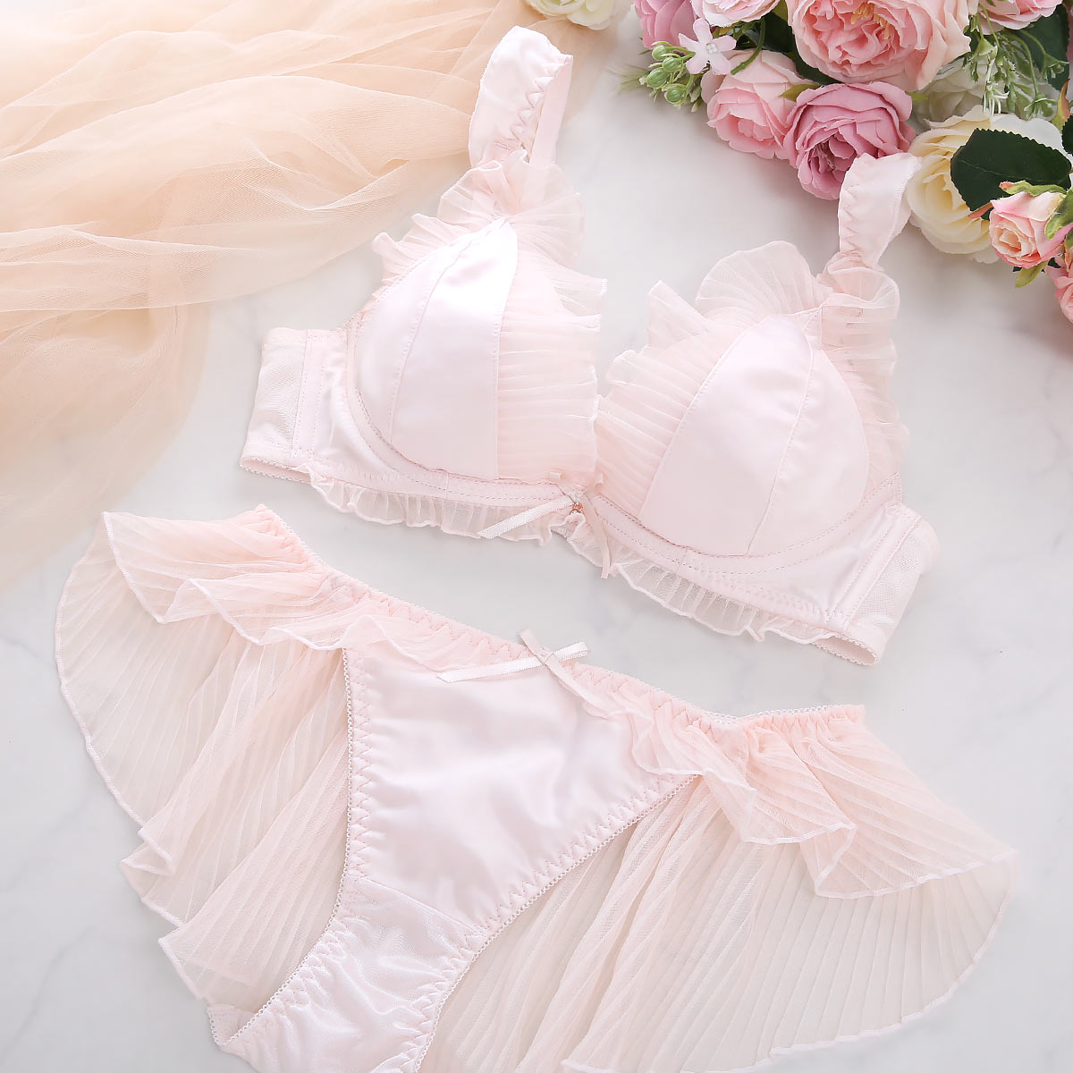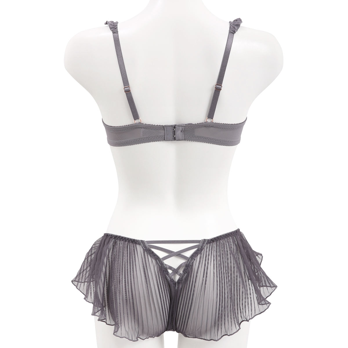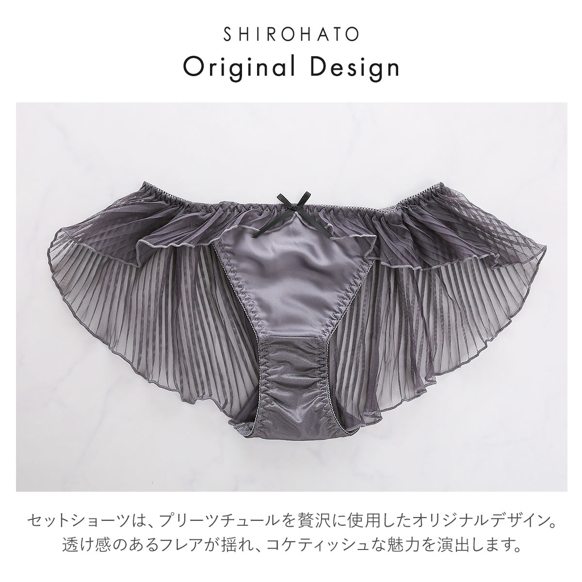ひらめくプリーツチュールとサテンが上品なブラ&フレアショーツ
