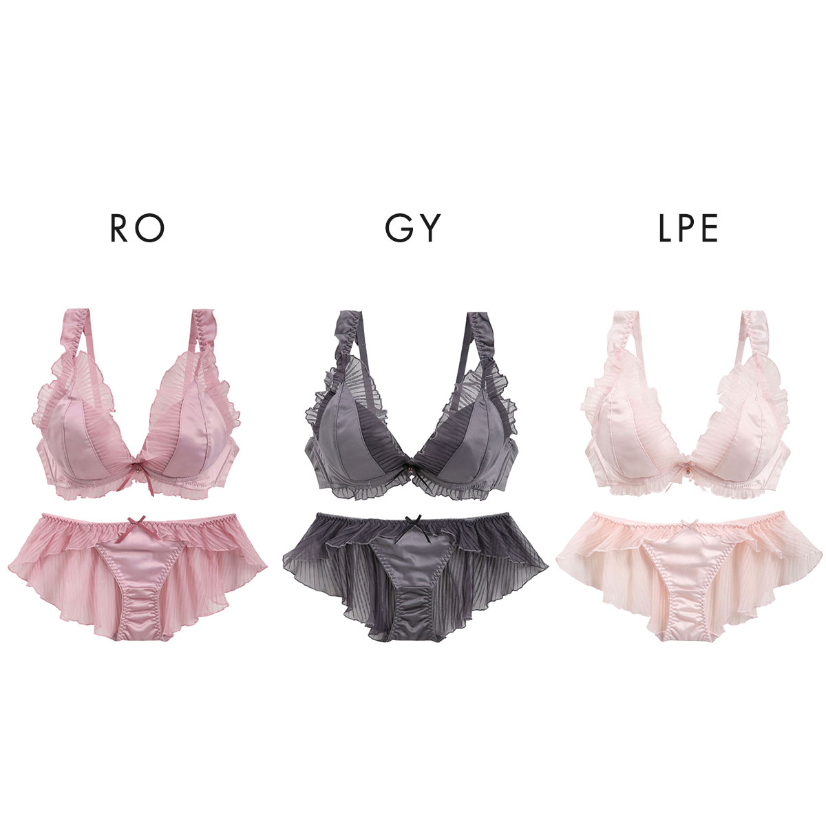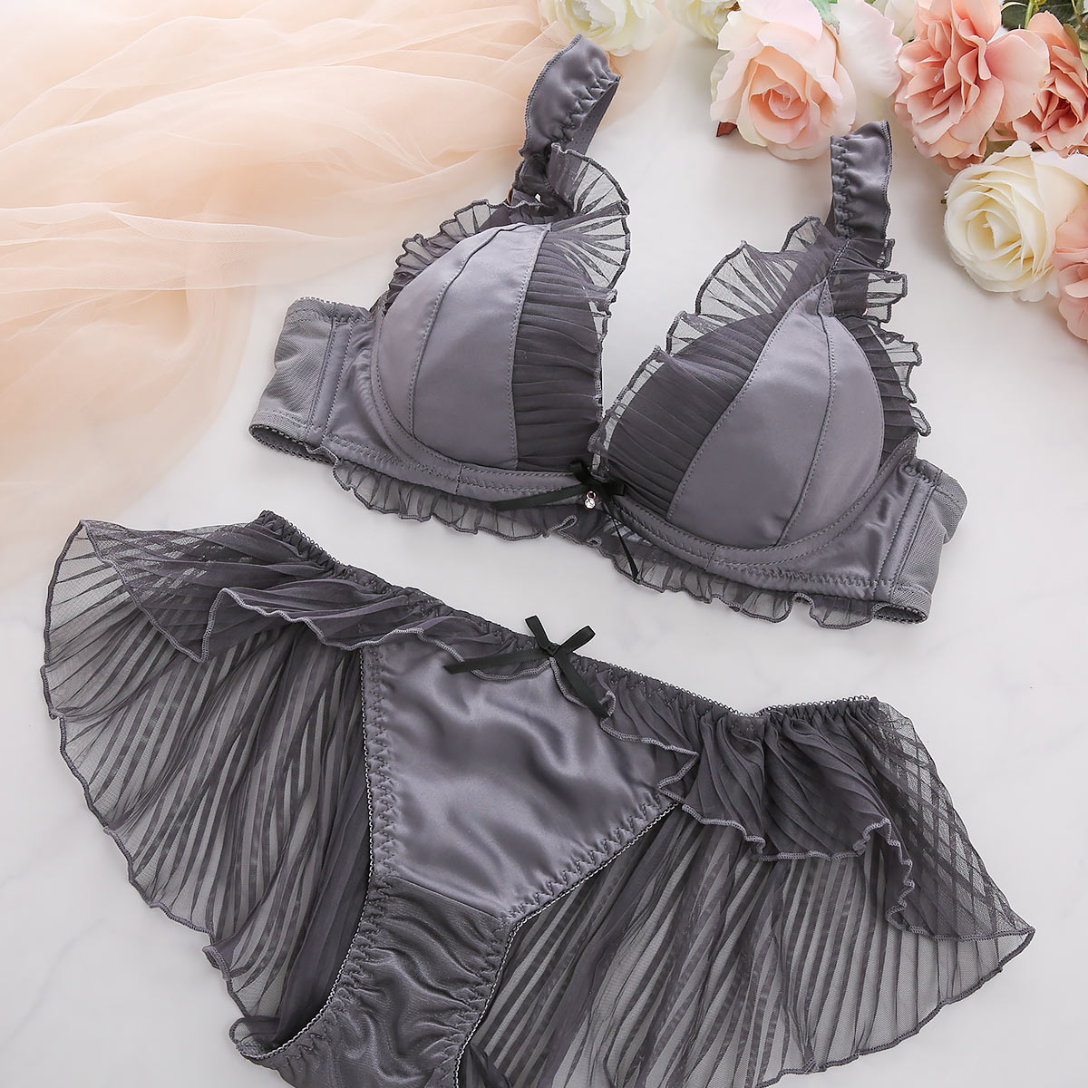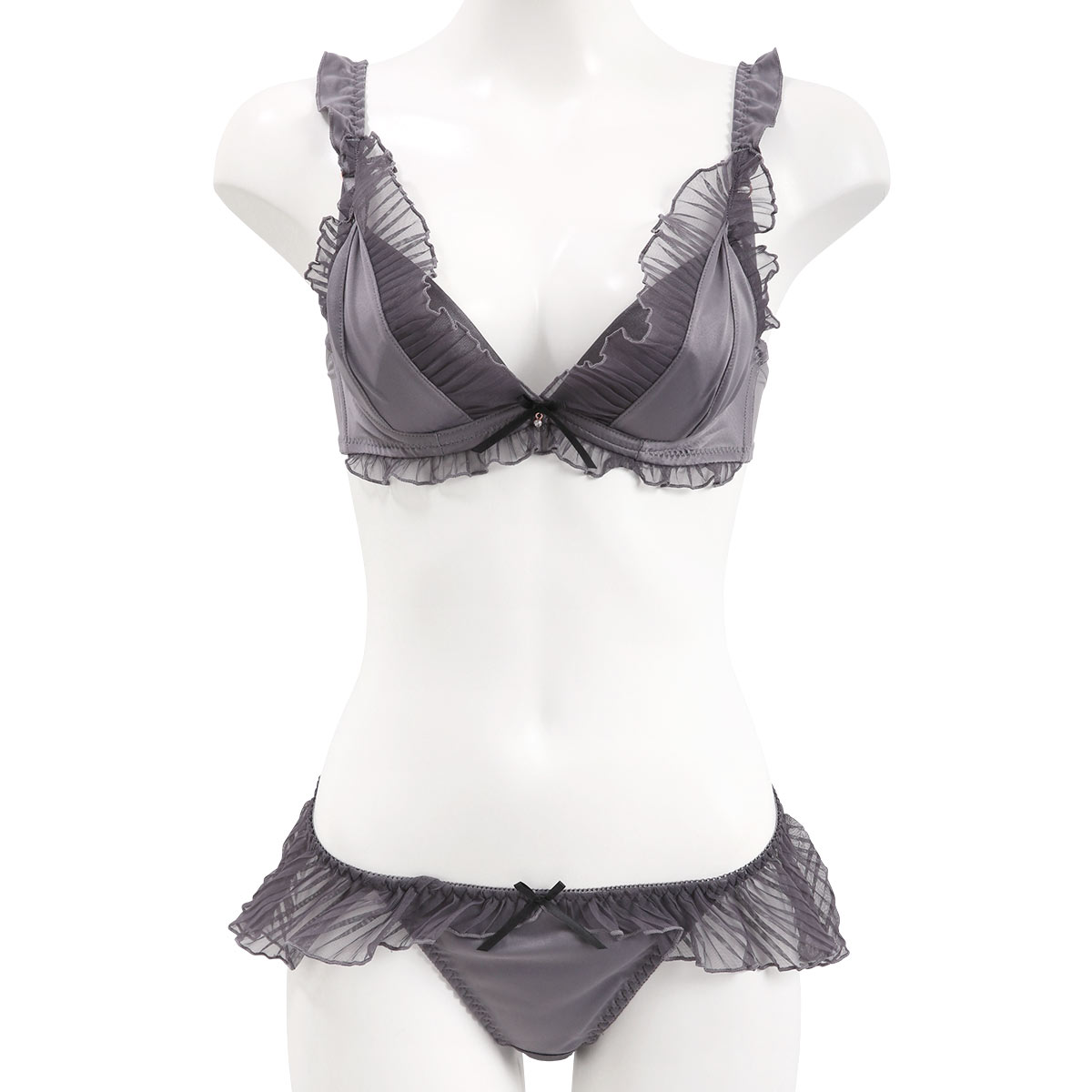 ひらめくプリーツチュールとサテンが上品なブラ&フレアショーツ