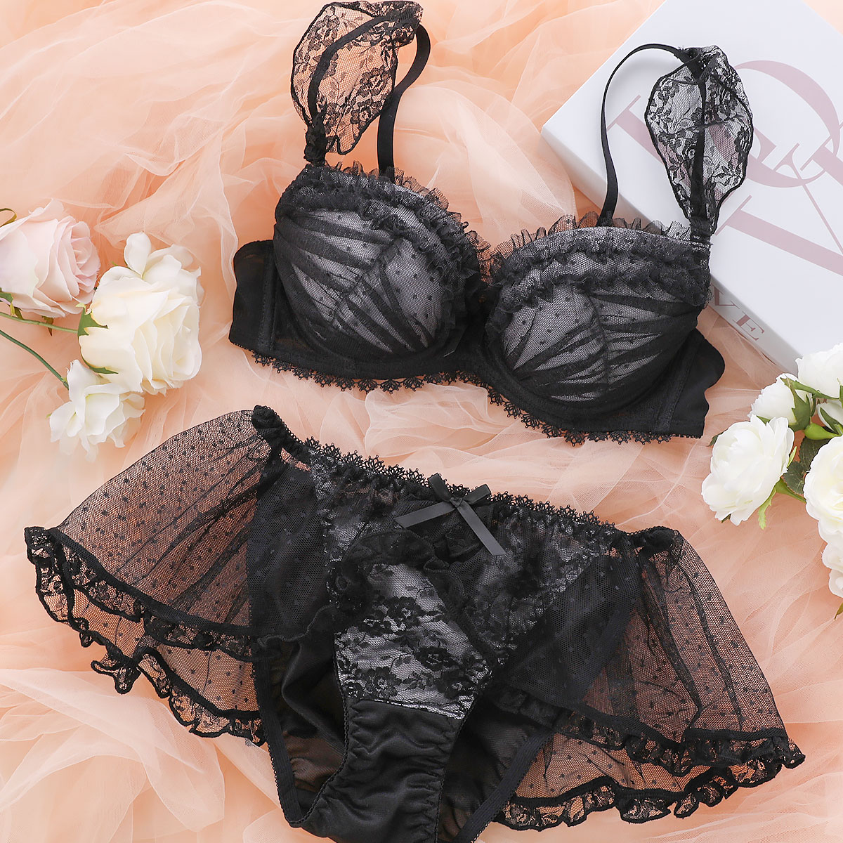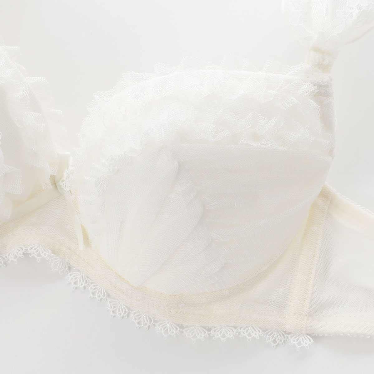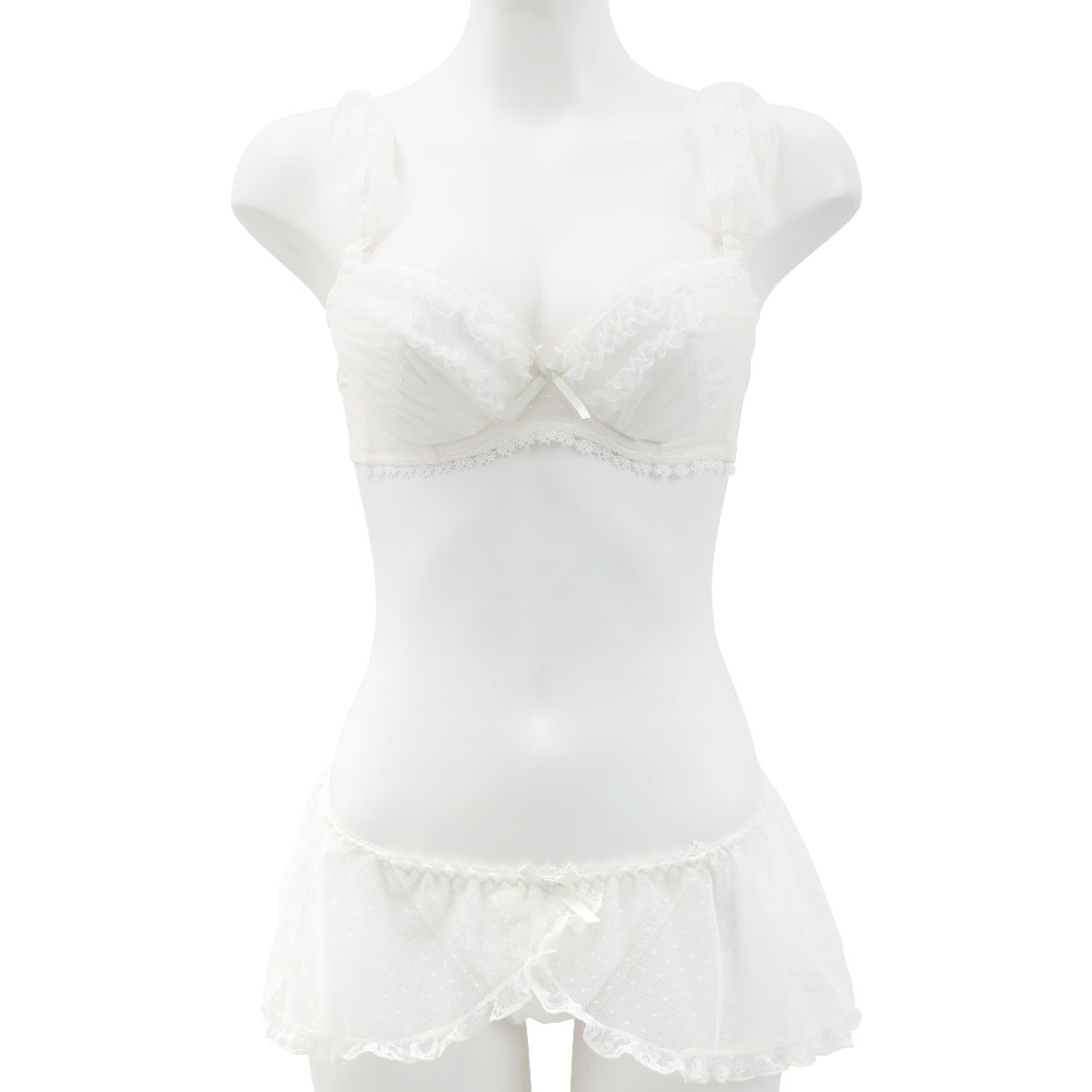 ドットチュールとオールオーバーレースを贅沢に使用した、ロマンティックムードいっぱいのブラセット。