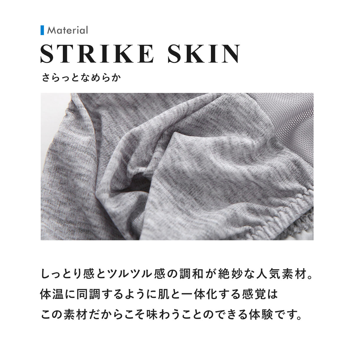 ストライクスキン(つるっとしていてさらっと滑らかな柔らかいスペシャルな素材)と柔らかいネット素材を使用した新パターンビキニです!カップ位置を通常より下にし、下向きに収めていただく仕様です!パワーネットからチラッと見える感じもGOODです!フロントハーフシーム