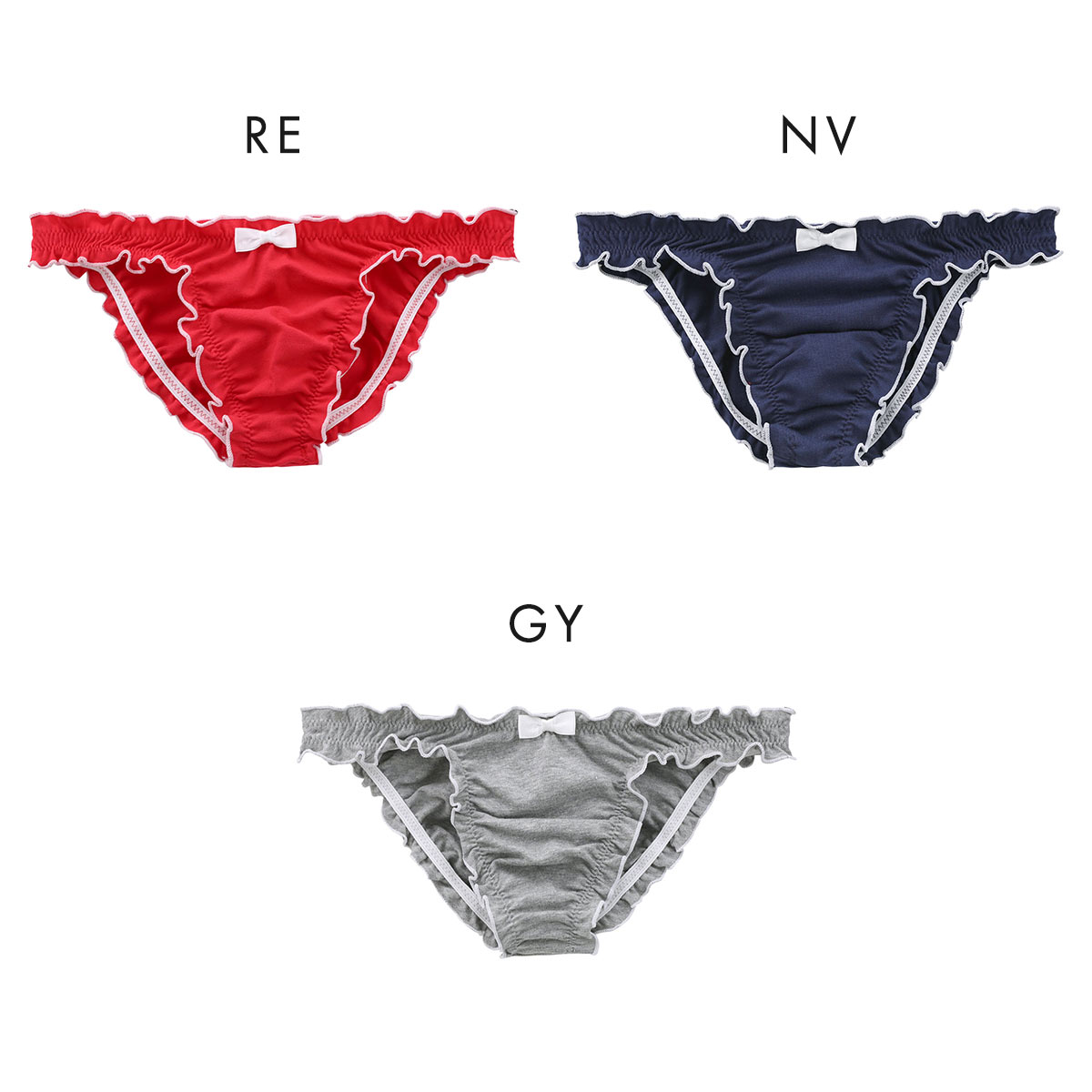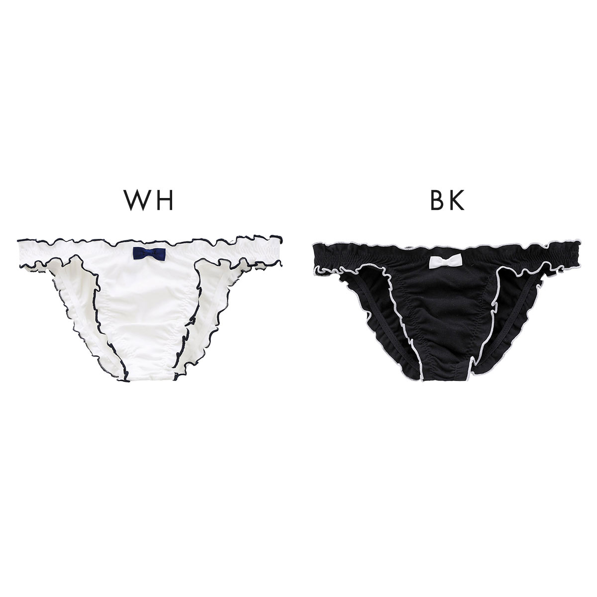 肌触りの良いコットンベア天を使用したキュートなフルバックビキニ。縁はメロー加工を施し、ひらひらフリフリがとっても愛らしいデザインです♪