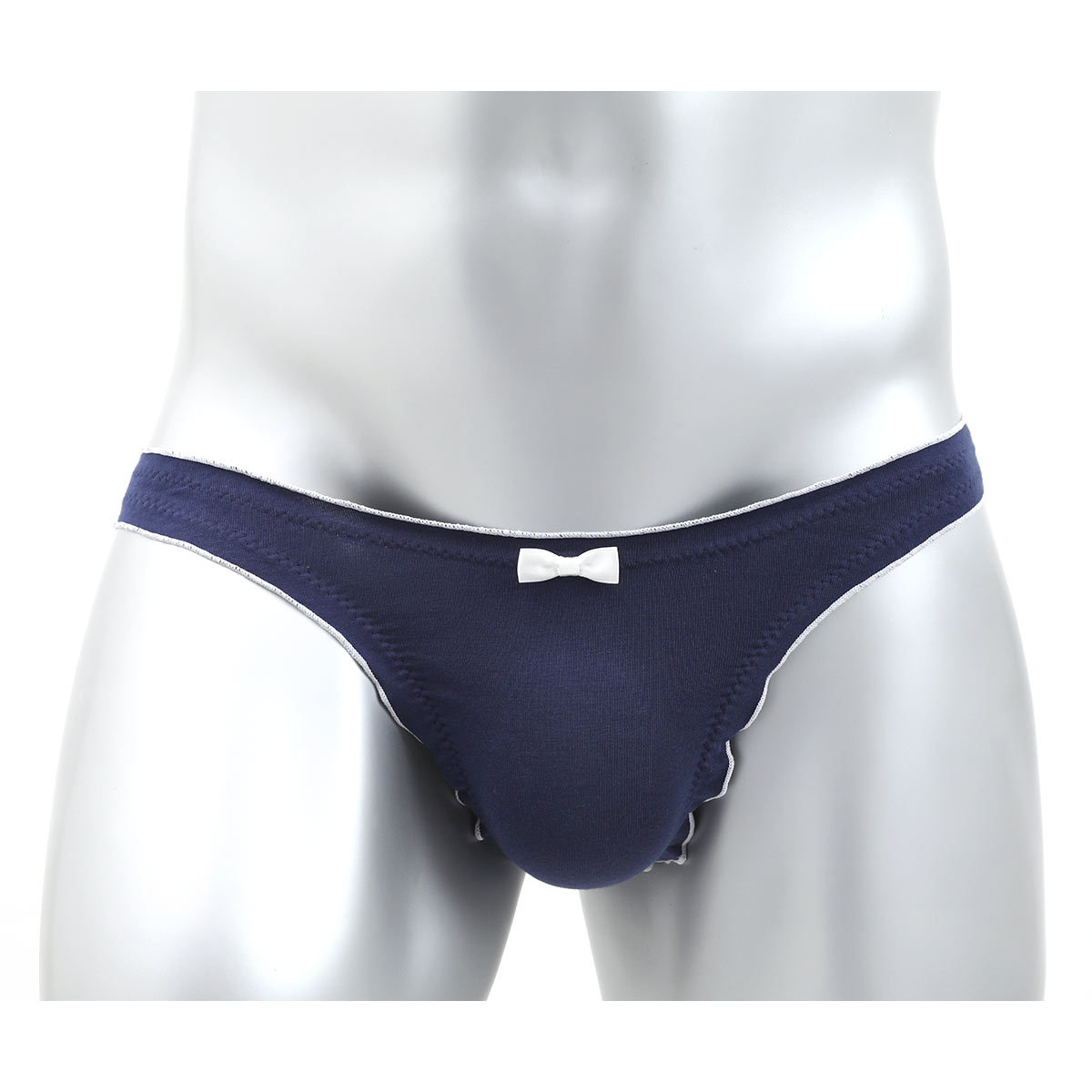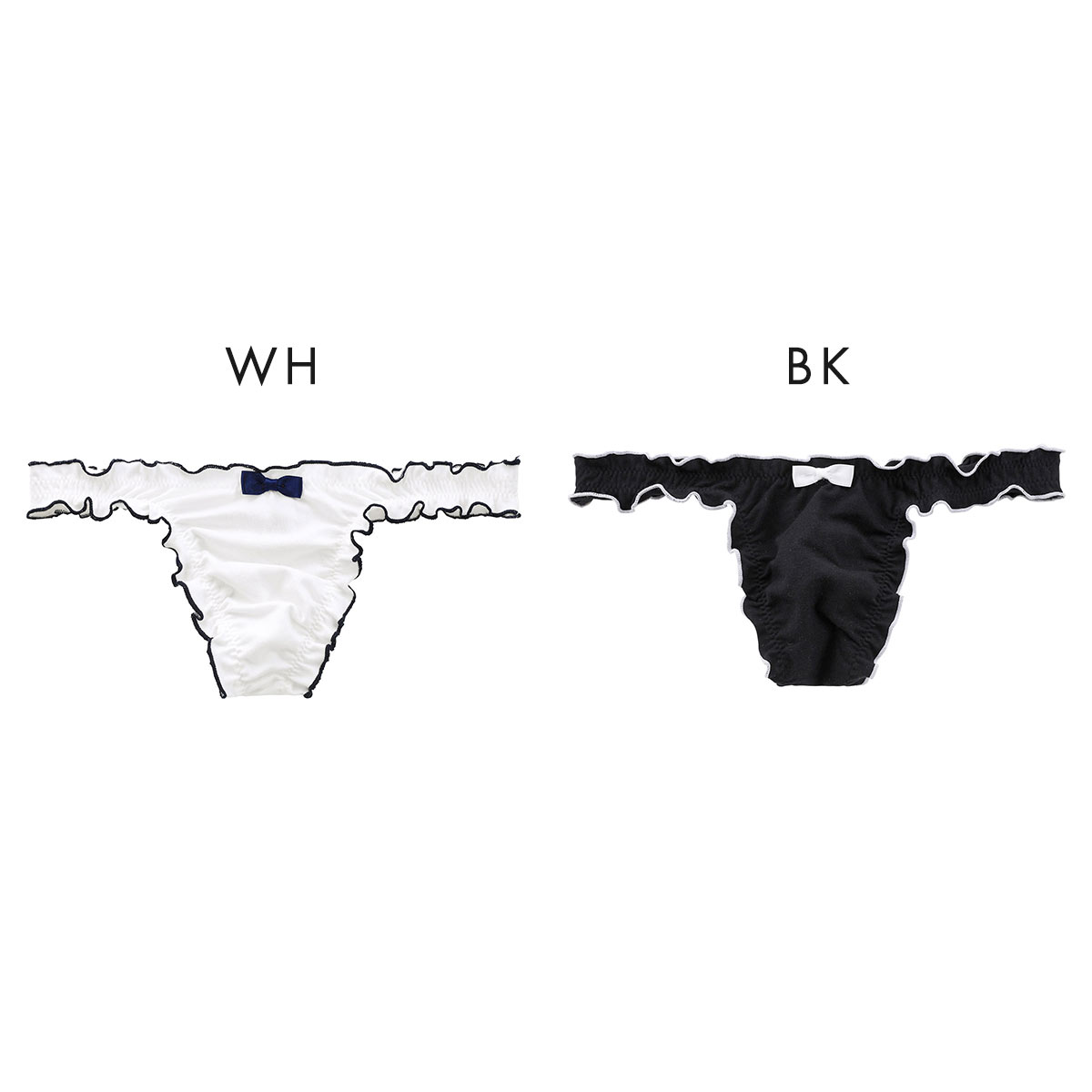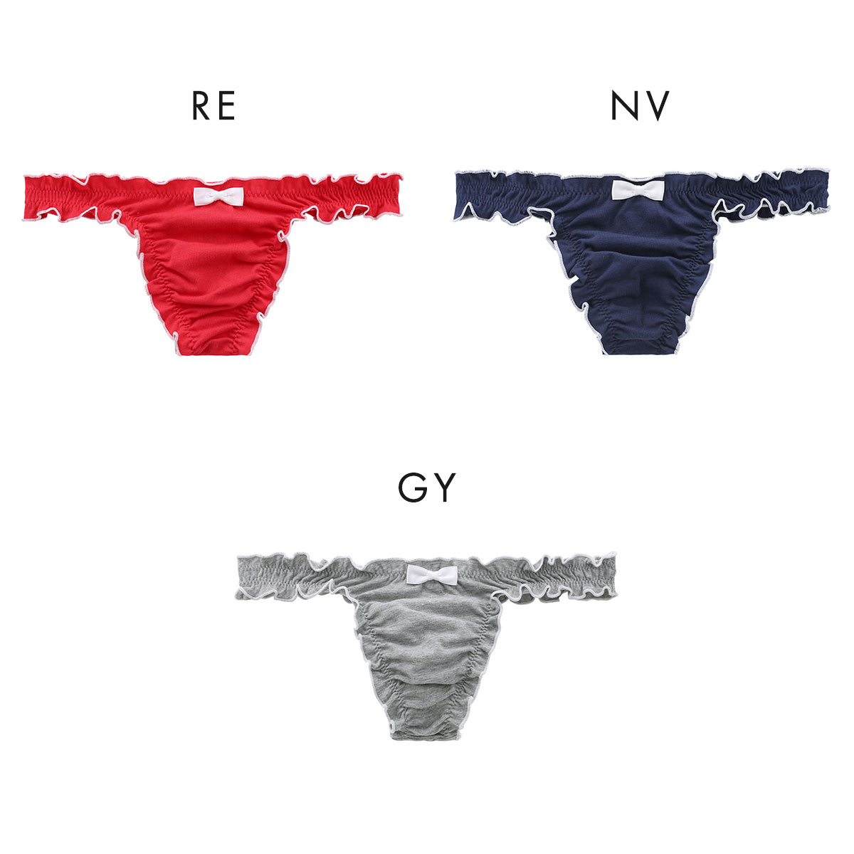 肌触りの良いコットンベア天を使用したキュートなTバックビキニ。縁はメロー加工を施し、ひらひらフリフリがとっても愛らしいデザインです♪