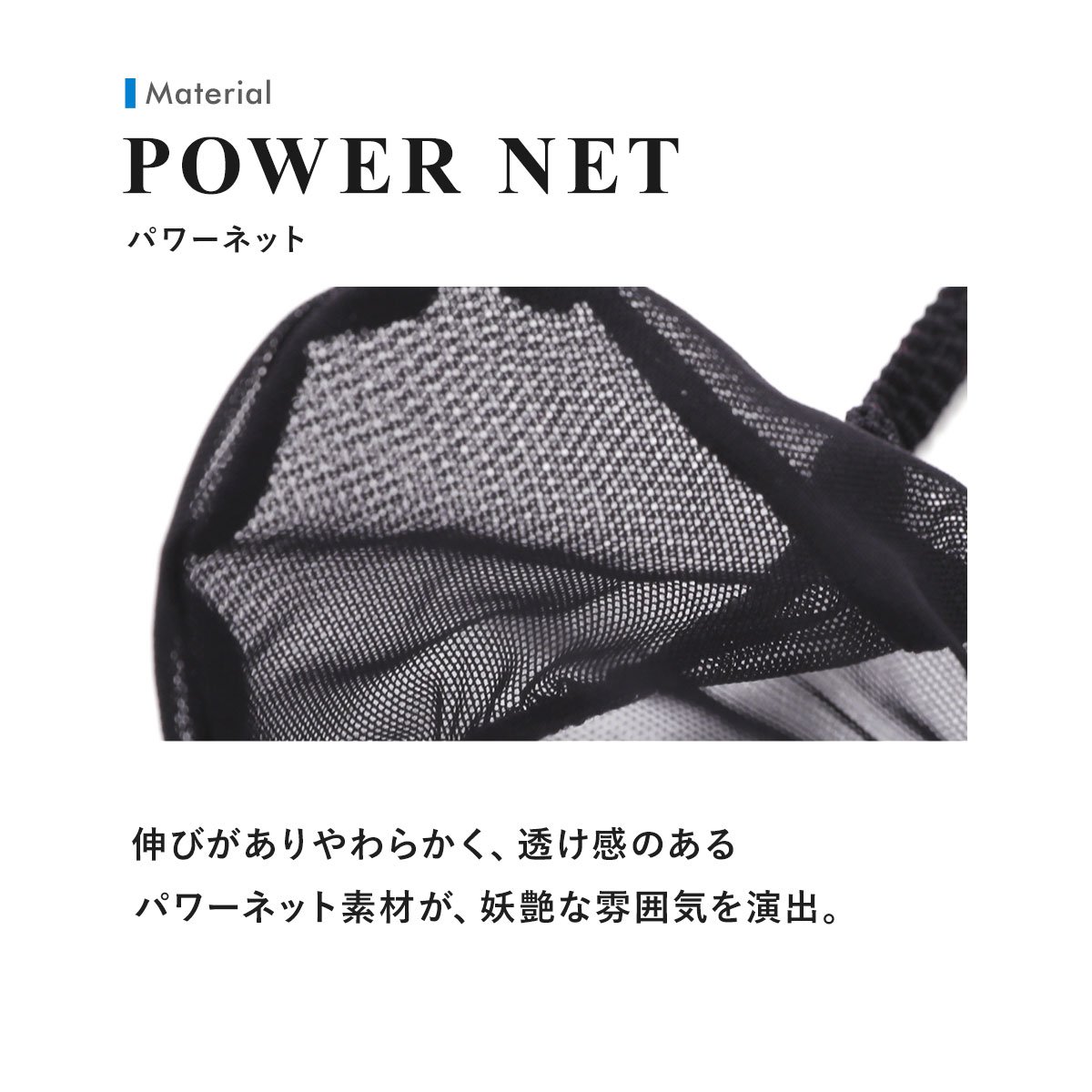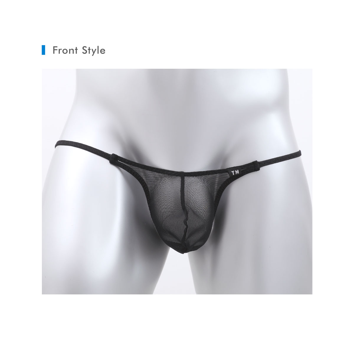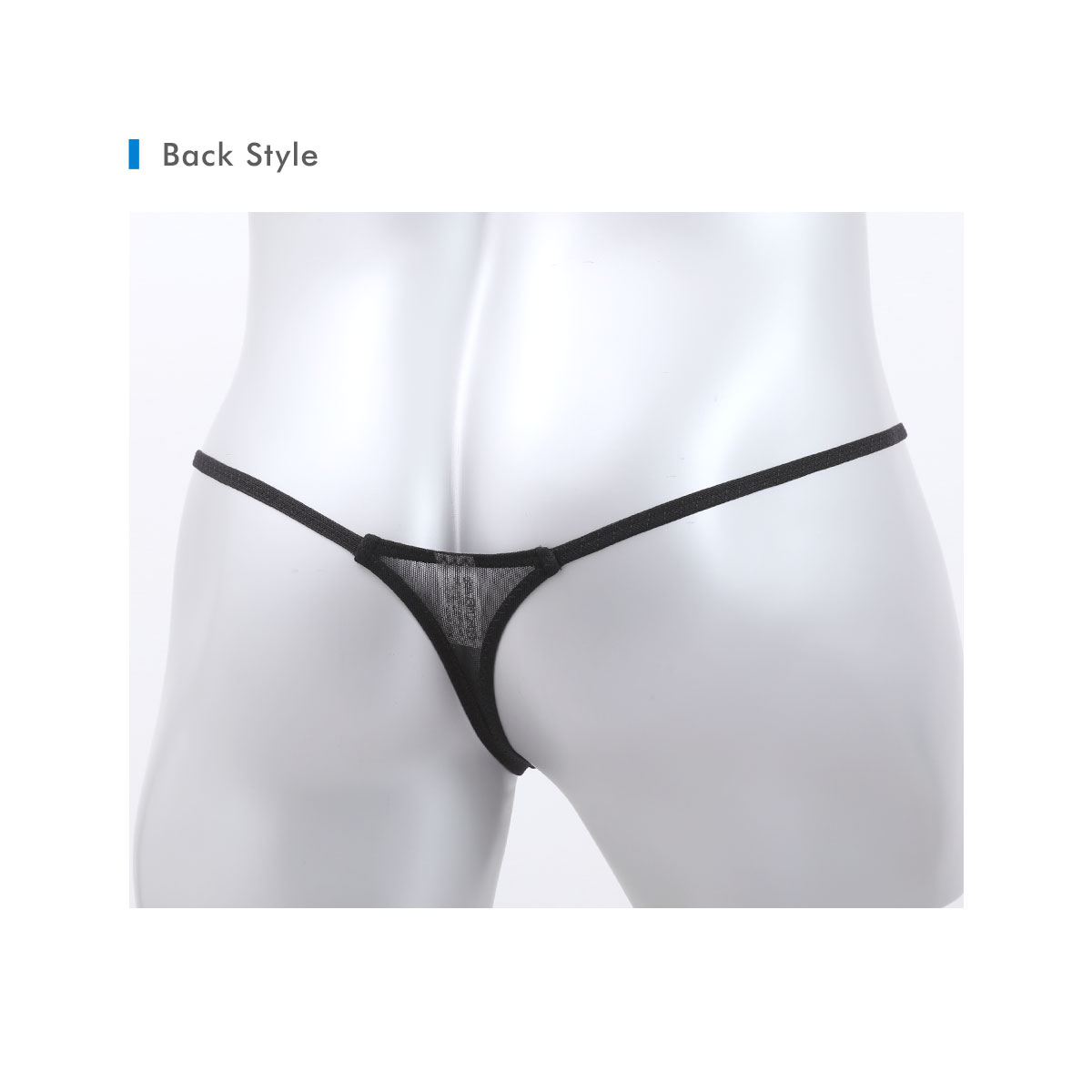 伸びがあり柔らかいシースルー素材(パワーネット)を使用した華奢でセクシーなバルジスタイルのTバックです。シンプルながら綺麗なパターンです。フロントフルシームです。