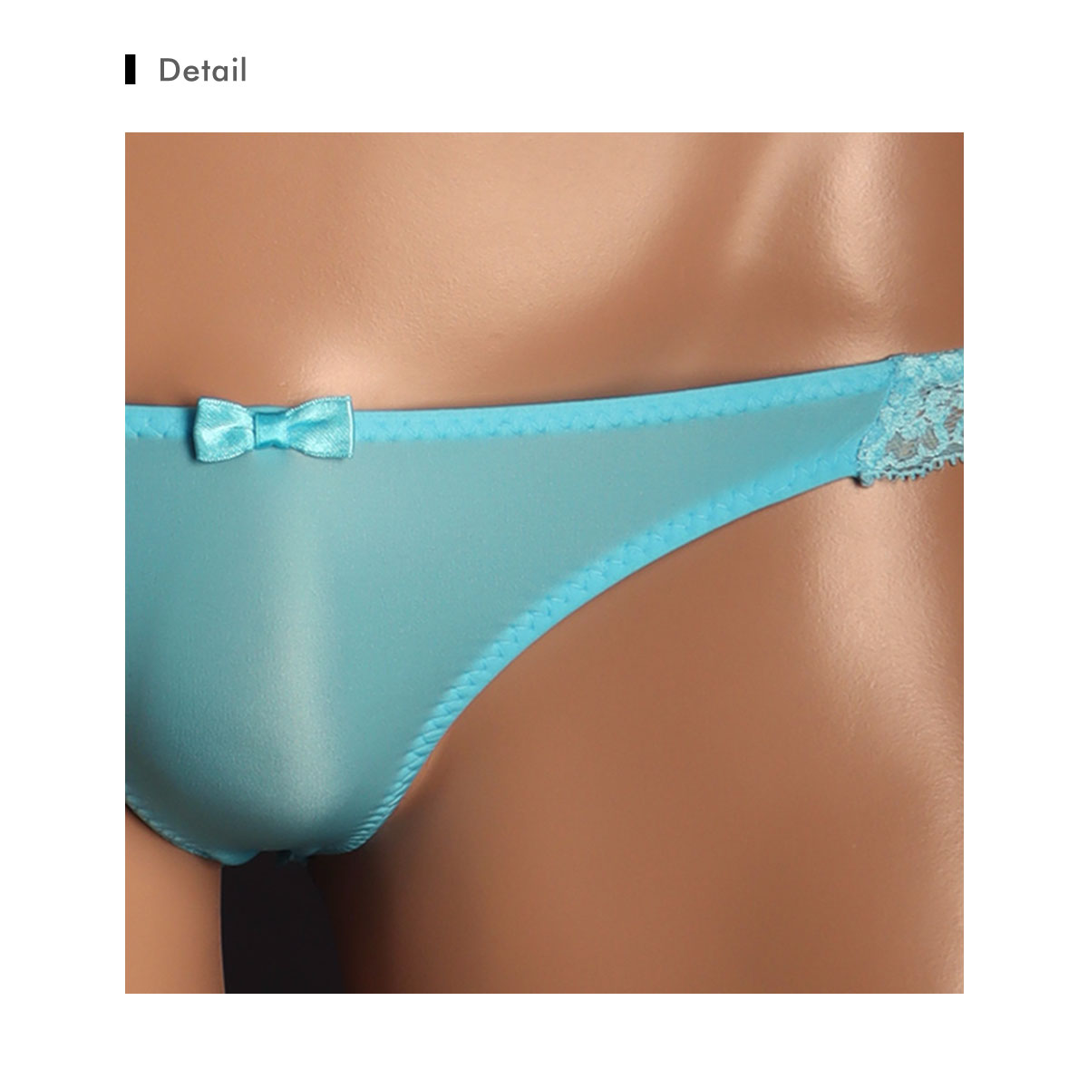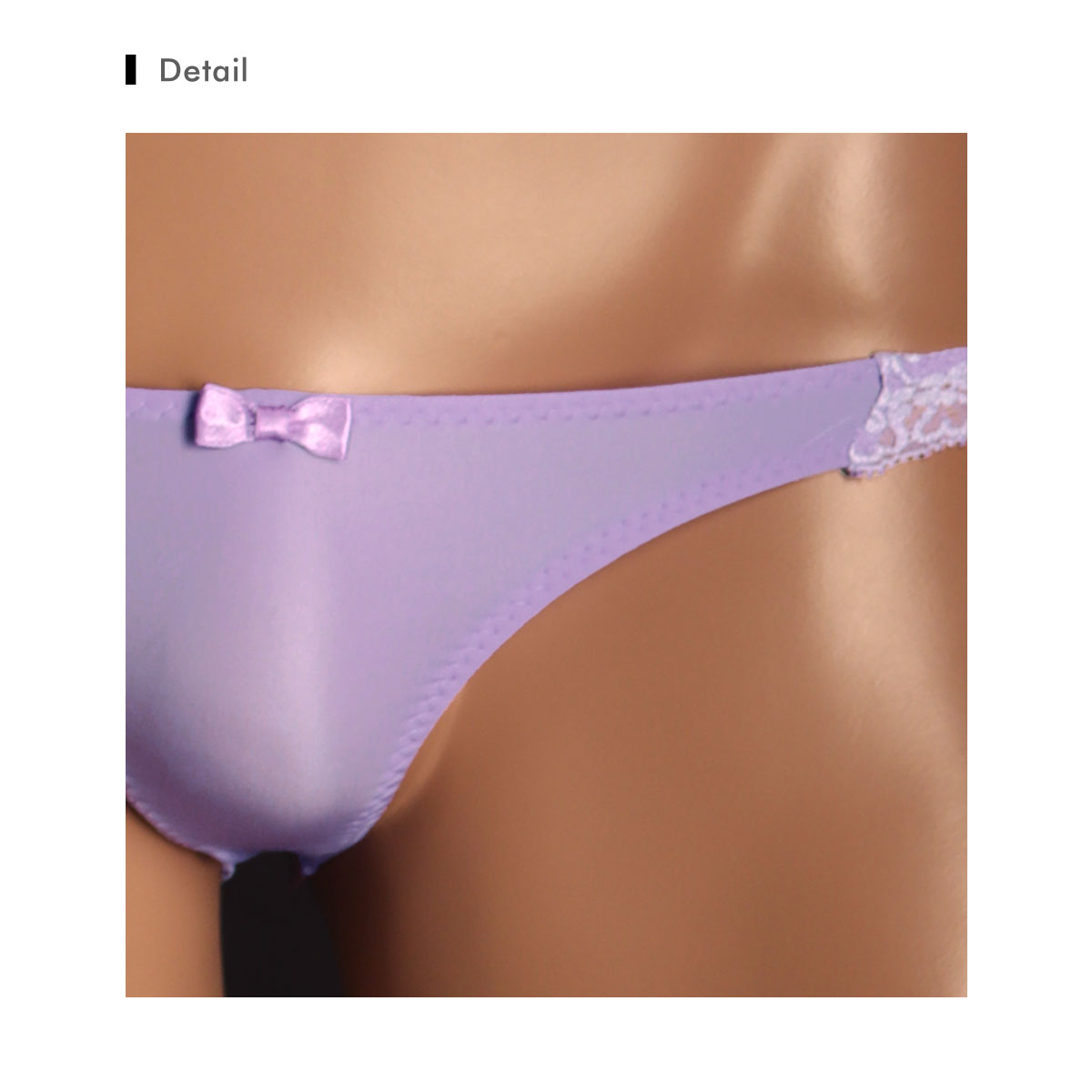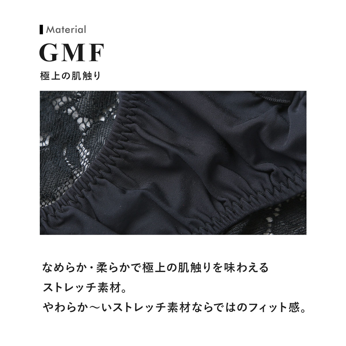 GMF(滑らかで柔らかで極上の肌触りを味わえるストレッチ素材)を使用したハーフバックショーツです。後身は総レースの少し浅めのパターンとなってます。前身に付いた同色リボンとサイドのギャザーが可愛いユニセックスタイプです。