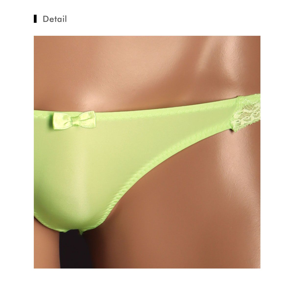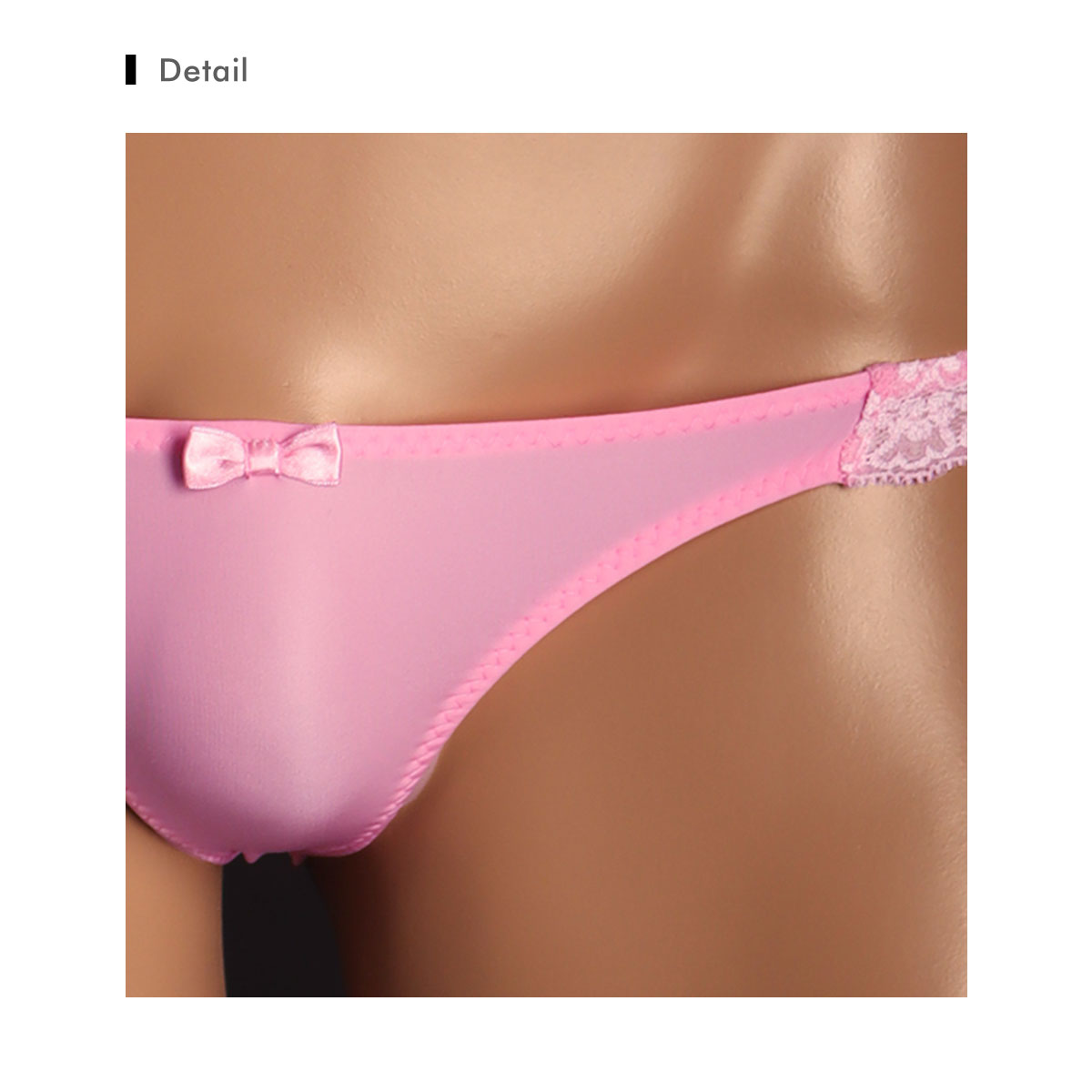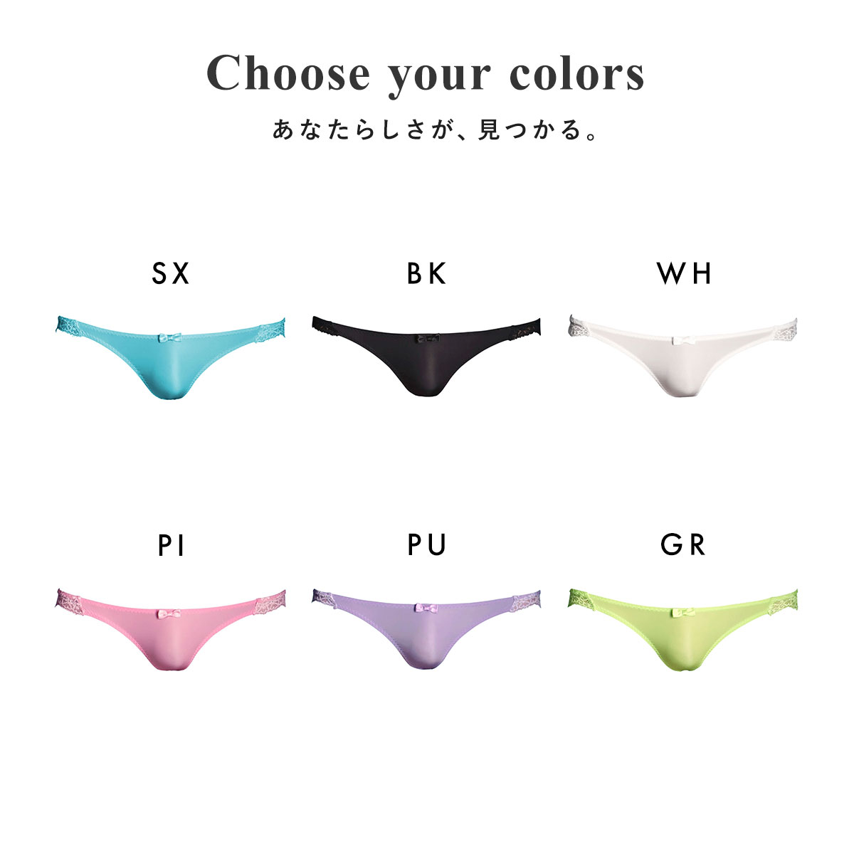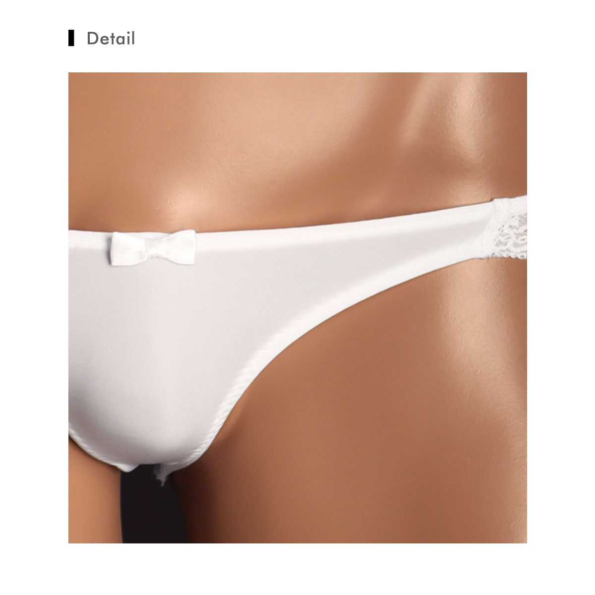 GMF(滑らかで柔らかで極上の肌触りを味わえるストレッチ素材)を使用したハーフバックショーツです。後身は総レースの少し浅めのパターンとなってます。前身に付いた同色リボンとサイドのギャザーが可愛いユニセックスタイプです。