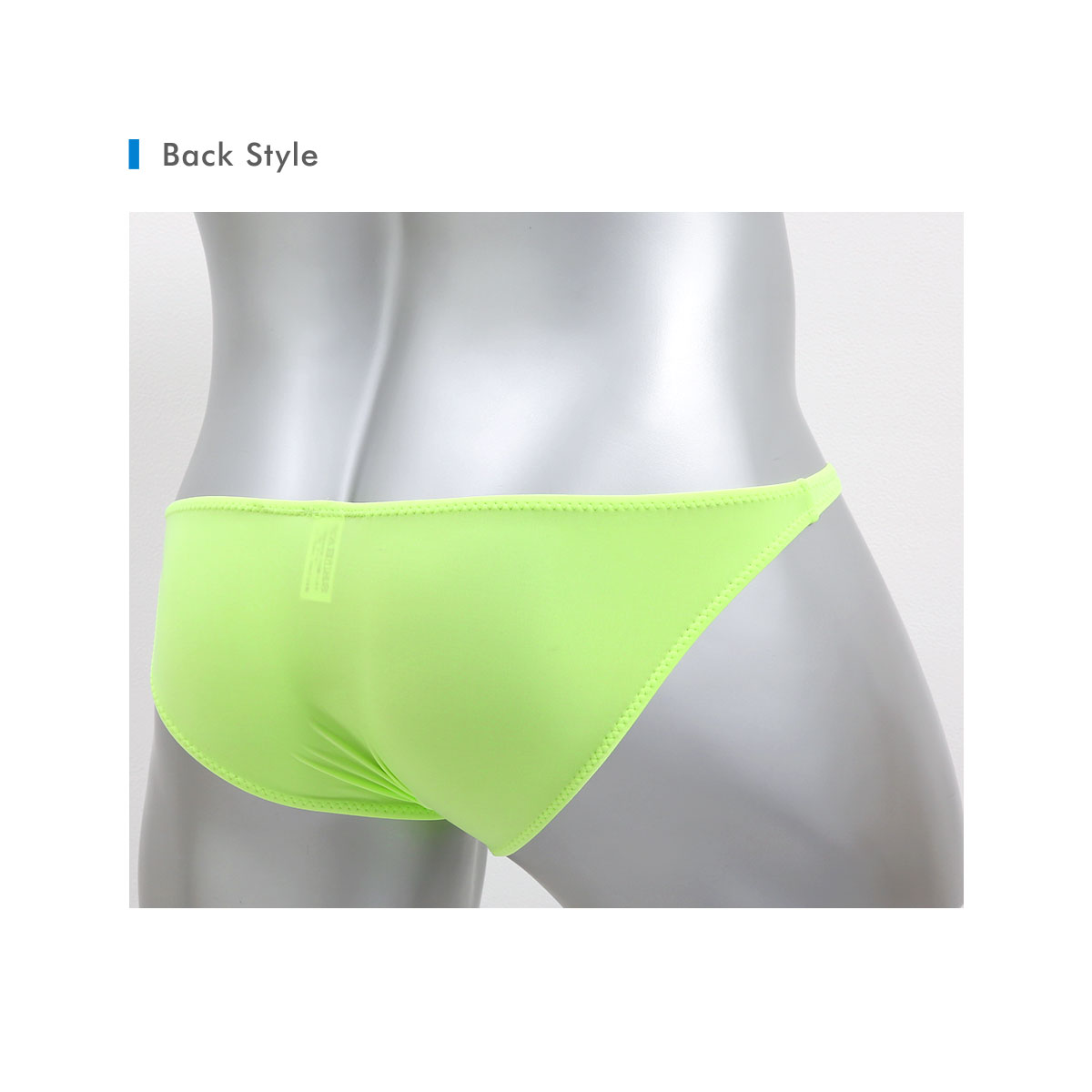 ストライクスキン(つるっとしていてさらっと滑らかな柔らかいスペシャルな素材)を使用したフルバックビキニです。パターンはちょうど良いローライズ具合でシュッとしておりスタイリッシュな仕上がりです!フルバックの野暮ったさは無く、綺麗に履いていただけますので普段履きに◎!