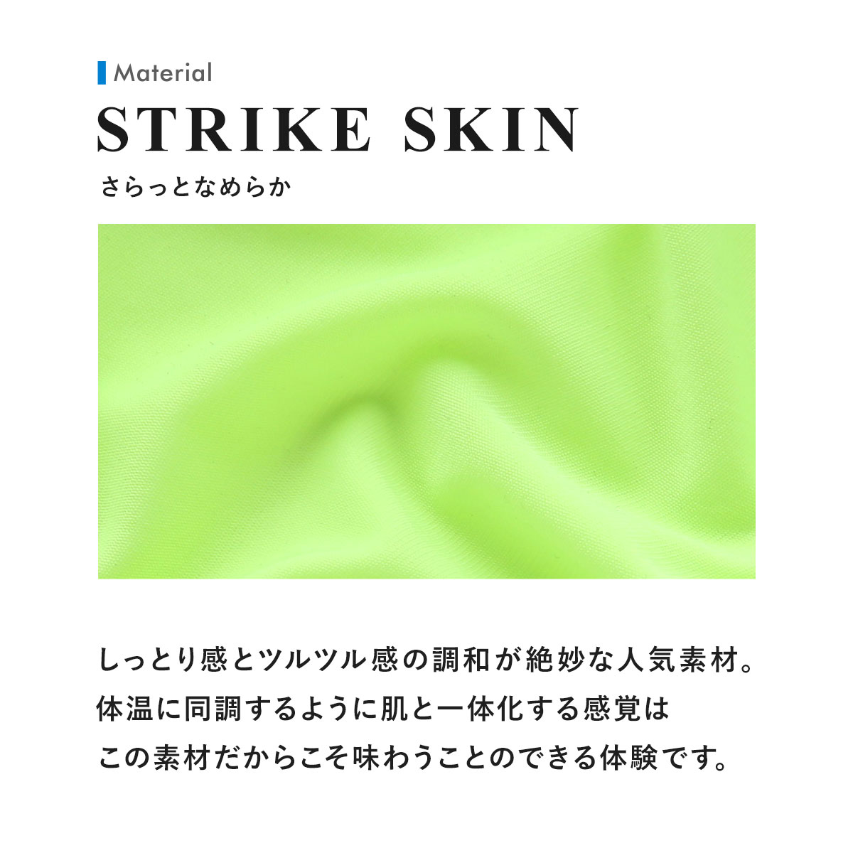 ストライクスキン(つるっとしていてさらっと滑らかな柔らかいスペシャルな素材)を使用したTバックビキニです。パターンはちょうど良いローライズ具合でシュッとしておりスタイリッシュな仕上がりです!野暮ったさは無く、綺麗に履いていただけますので普段履きに◎