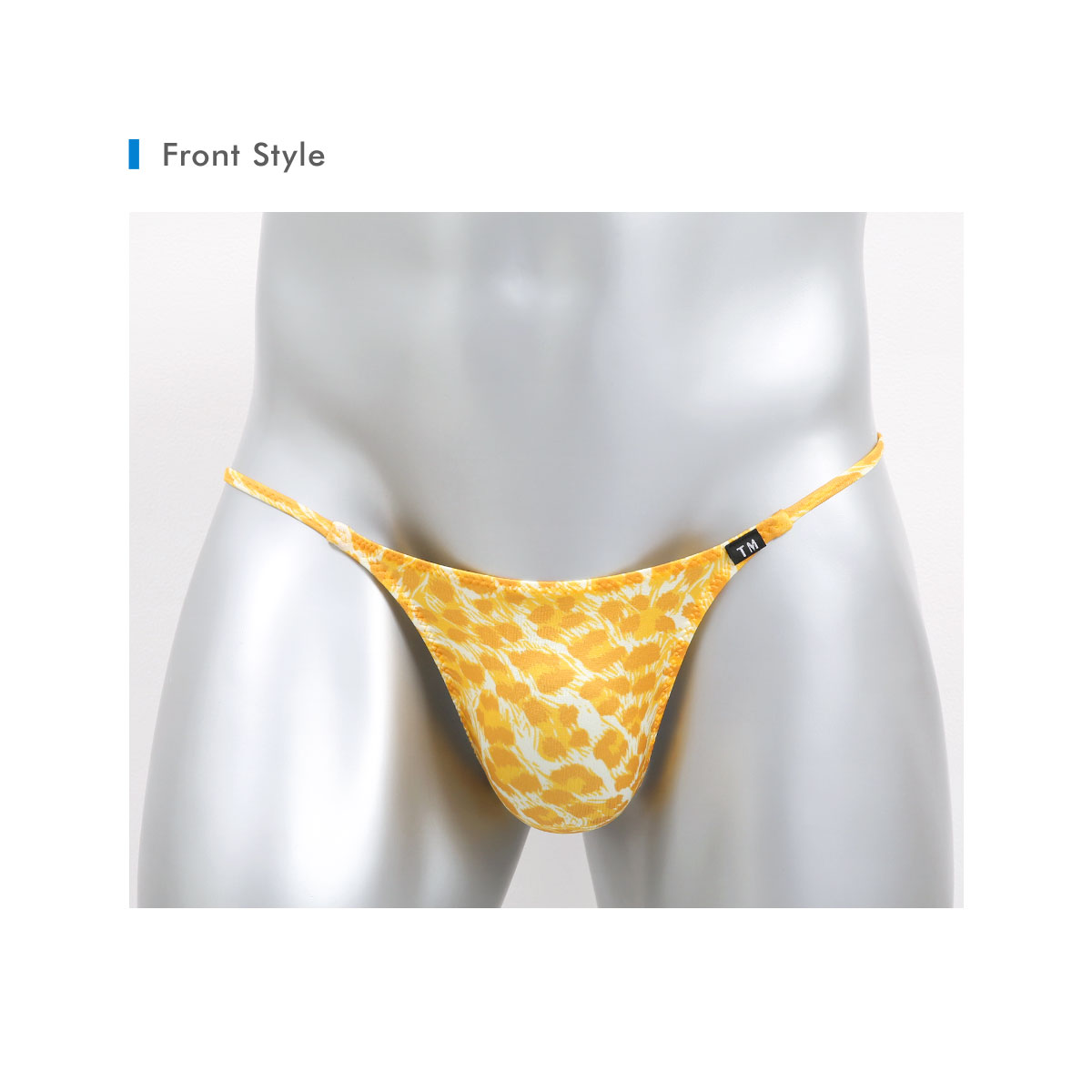 YKS(柔らかくて光沢があるサテン調の2wayストレッチ素材)を使用したポップなレオパード柄のサイドストリングTバックビキニです。全体的にスッキリ細く仕上げとてもシャープなスタイルにしています!