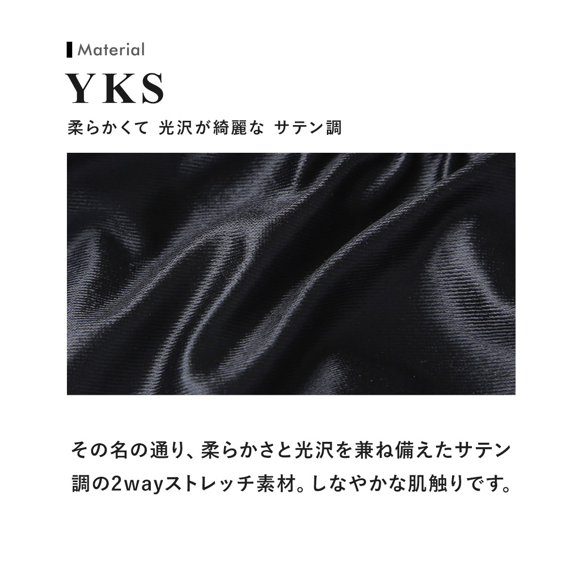 YKS(柔らかくて光沢が綺麗なサテン調の2wayストレッチ素材)を使用したジャストインパクトの上向き収納バージョンのTバックビキニです。穿いていただくと上向き方向に自然と収まるようなパターンにしています。YKSの生地感にあわせて若干パターンをいじっています。是非お試しください!