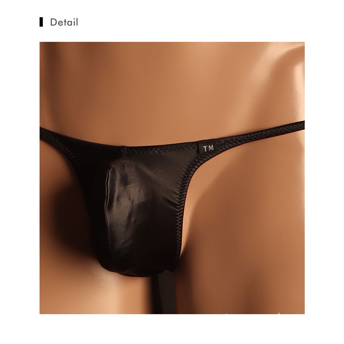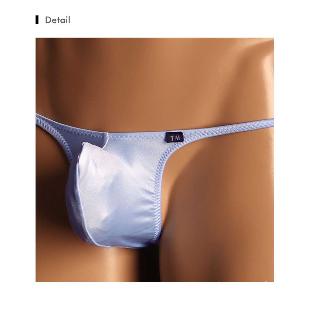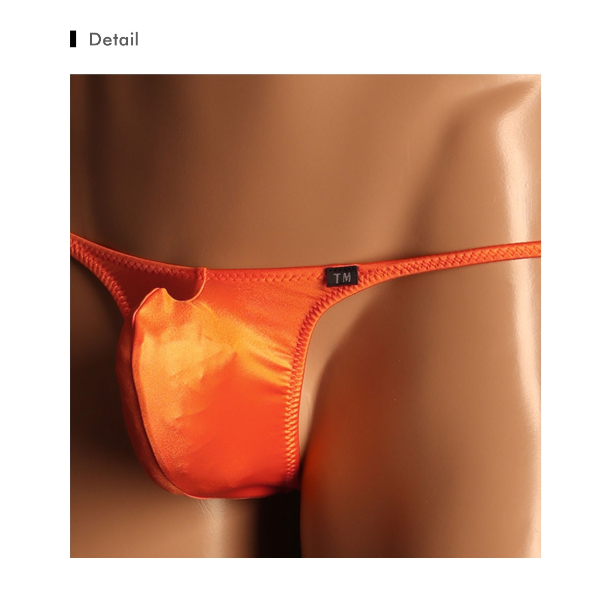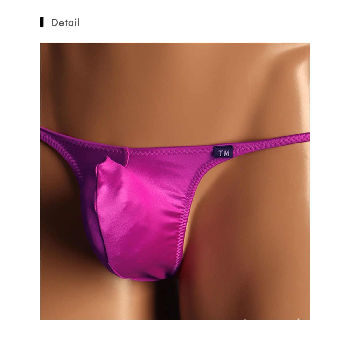 サテンのような光沢が綺麗なストレッチ素材YKSを使用したもっこりシャープスタイルの上向き収納バージョンのTバックビキニです。ジャストインパクトとは違いなめらかな曲線で上向きにもっていくパターンです。