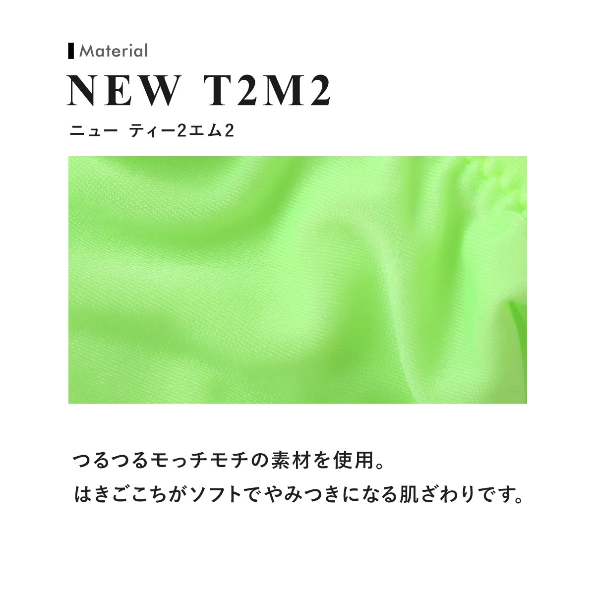 ツルツルモチモチな感触と独特の透け感で人気のNewT2M2を使用した大人気ジャストインパクトシリーズのアレンジバージョン。フロントの筒部分を少し控えめにし、よりジャストフィットするパターンにしてあります。このフィット感も是非お試しいただきたいです!
