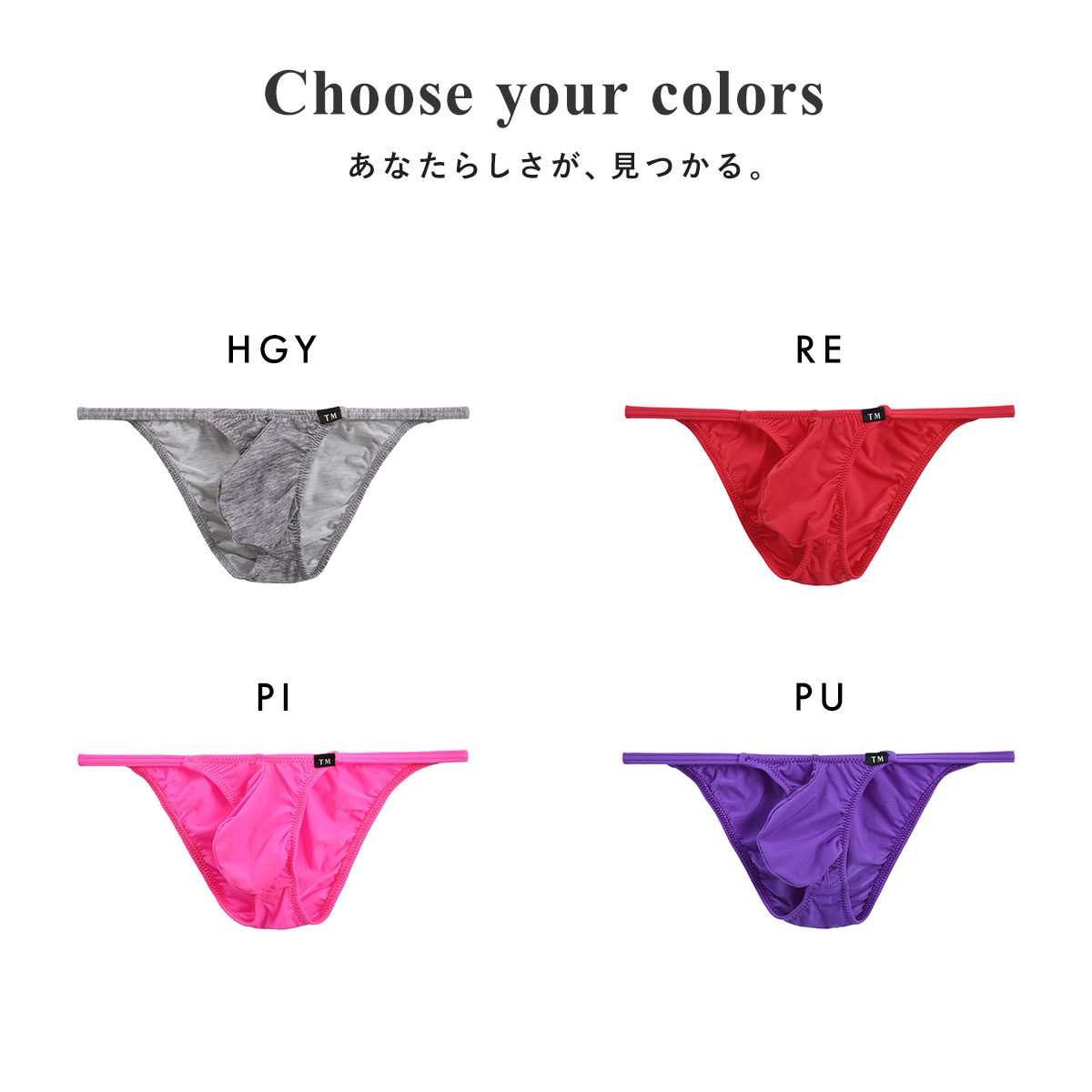 カラーHGY-杢グレー、RE-レッド、PI-ピンク、PU-パープル、SX-サックス、WH-ホワイト、BK-ブラック
