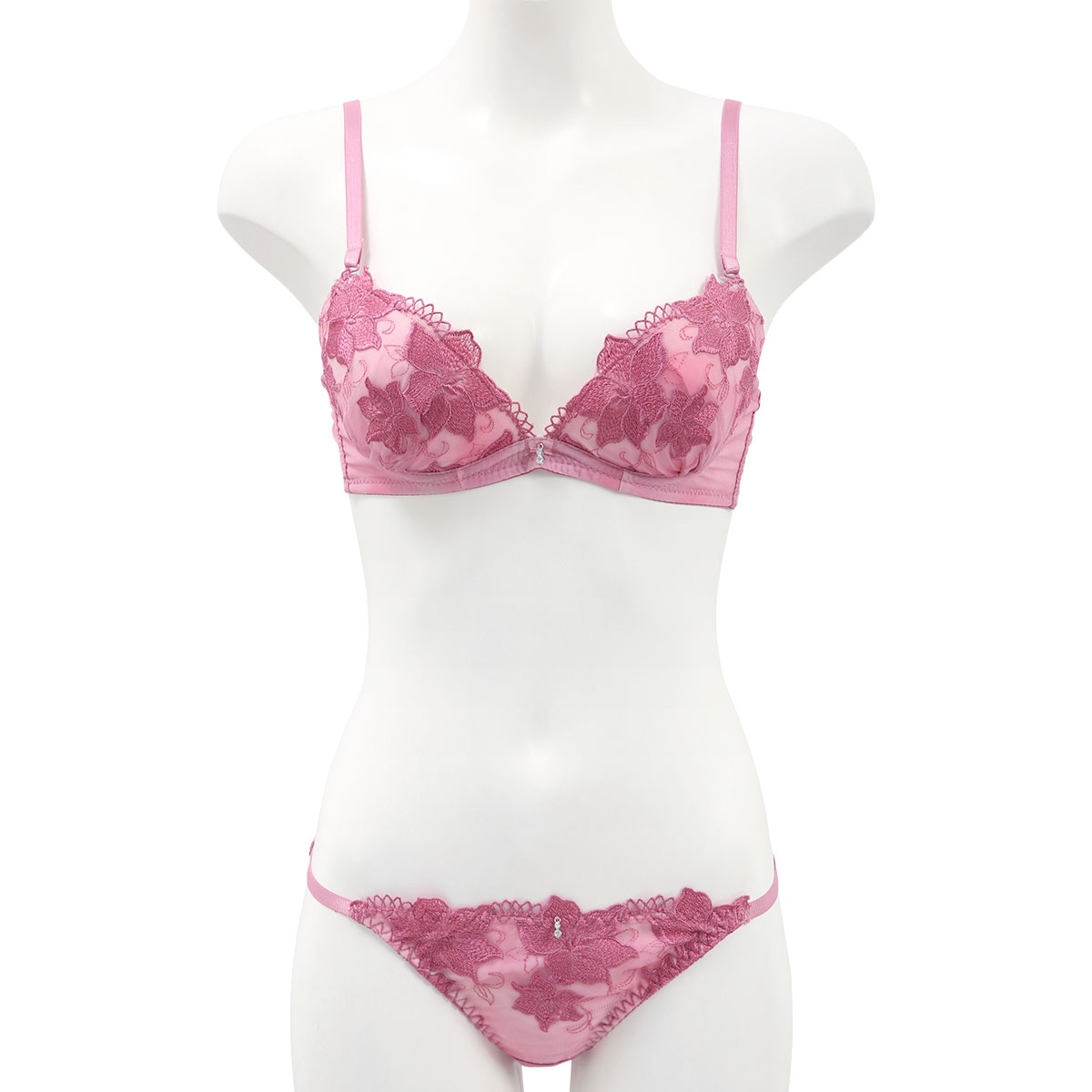 ブラはもっちり下厚モールドカップ+取り外し可能なパッドのWパッド仕様でくっきり谷間をメイク。バストボリュームの調整ができるのも嬉しいポイントです。
