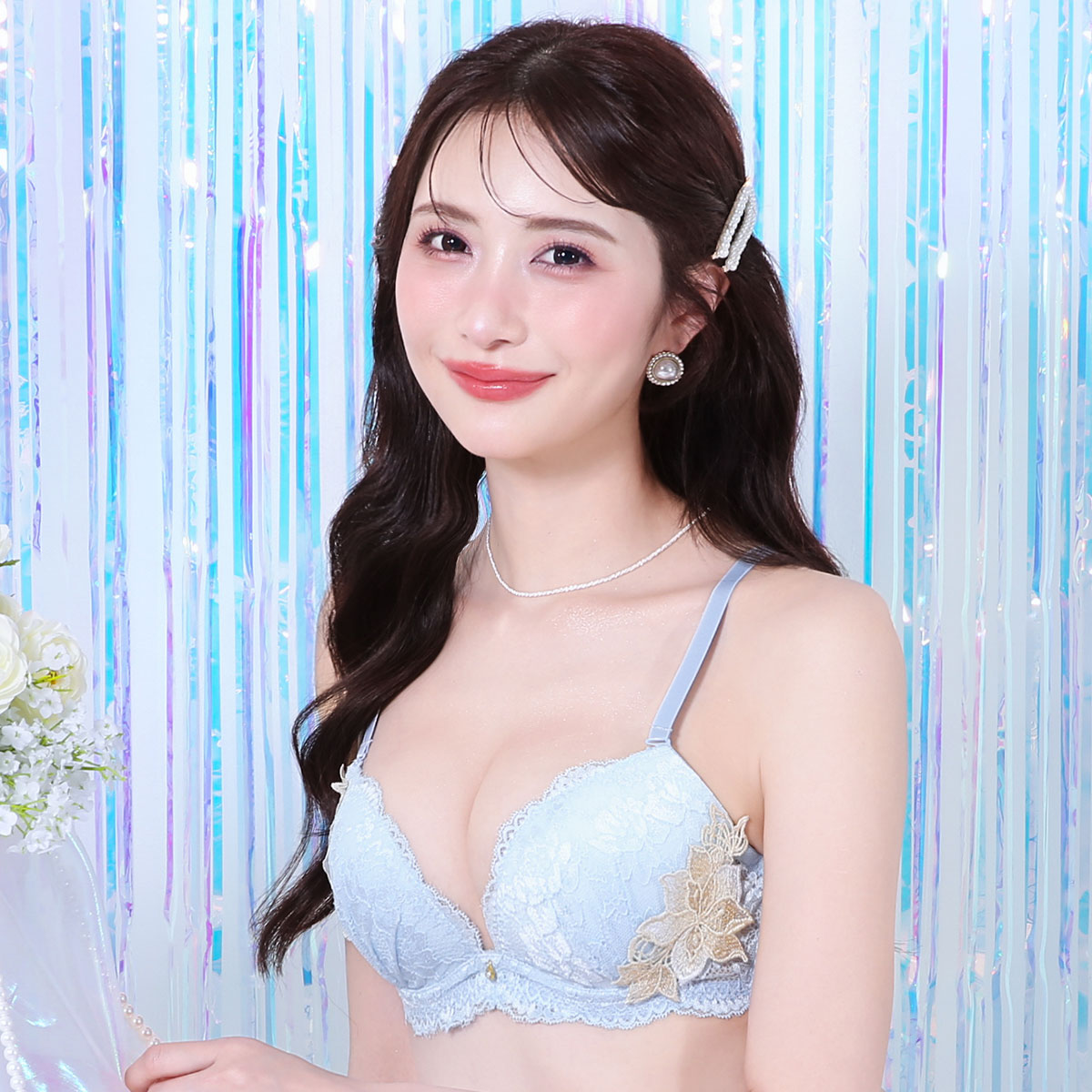 ブラはもっちり下厚モールドカップ+取り外し可能なパッドのWパッド仕様でむっちり谷間をメイク。バストボリュームの調整ができるのも嬉しいポイントです。