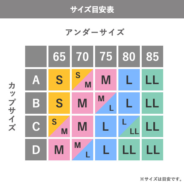 | サイズ | レディース S(バスト72-80cm) M(バスト79-87cm) L(バスト86-94cm) LL(バスト93-101cm) |