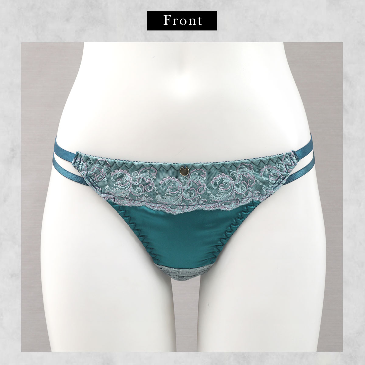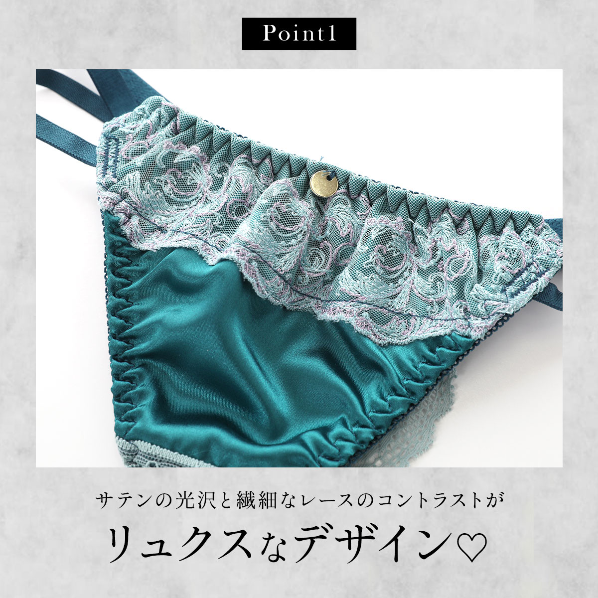 サテンの光沢と繊細なレースのコントラストがリュクスなデザイン!サイドのWコードでウエストラインをすっきり魅せる視覚効果も◎アウターにひびきにくく、ピッタリめのボトムスとも好相性です。
