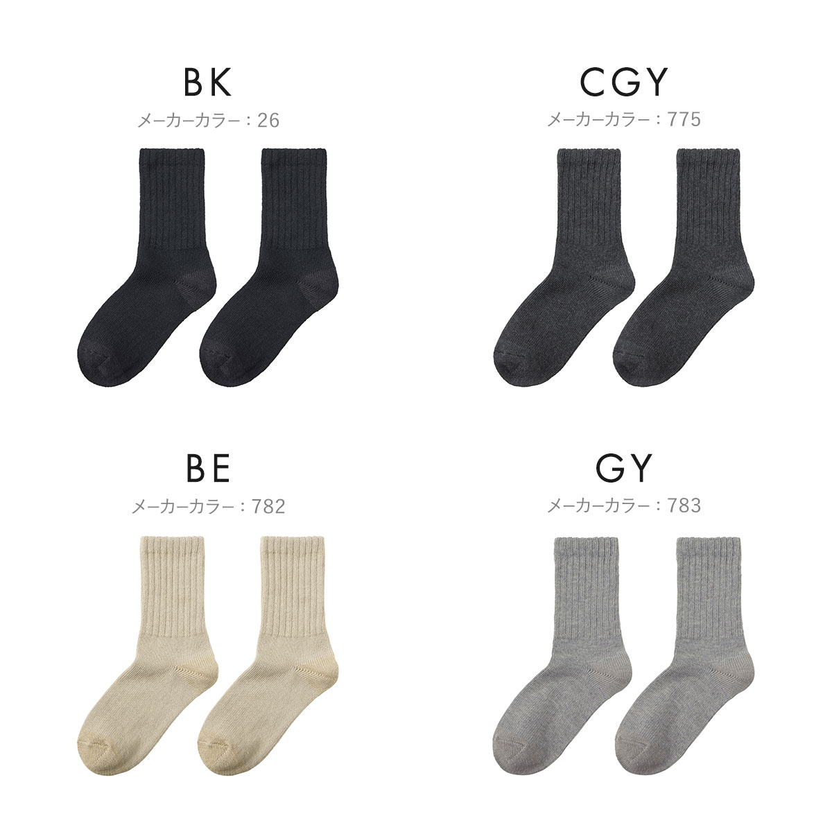 カラーBK-ブラック、CGY-チャコールグレー、BE-ベージュ、GY-グレー