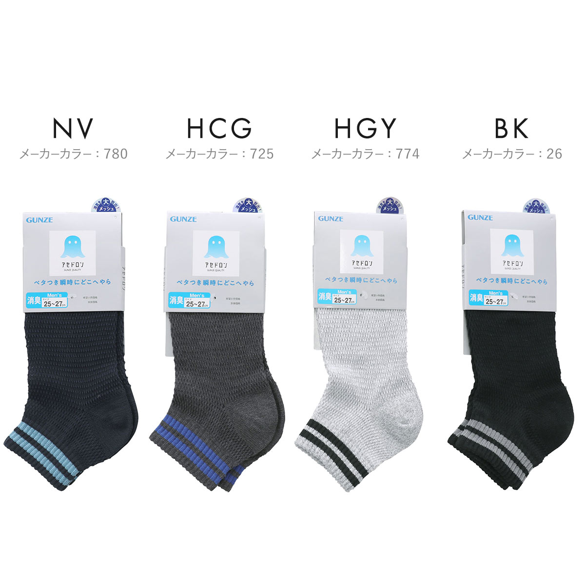 グンゼ アセドロン メガメッシュ ショート丈 ソックス メンズ 靴下 GUNZE 吸放湿 25-27cm