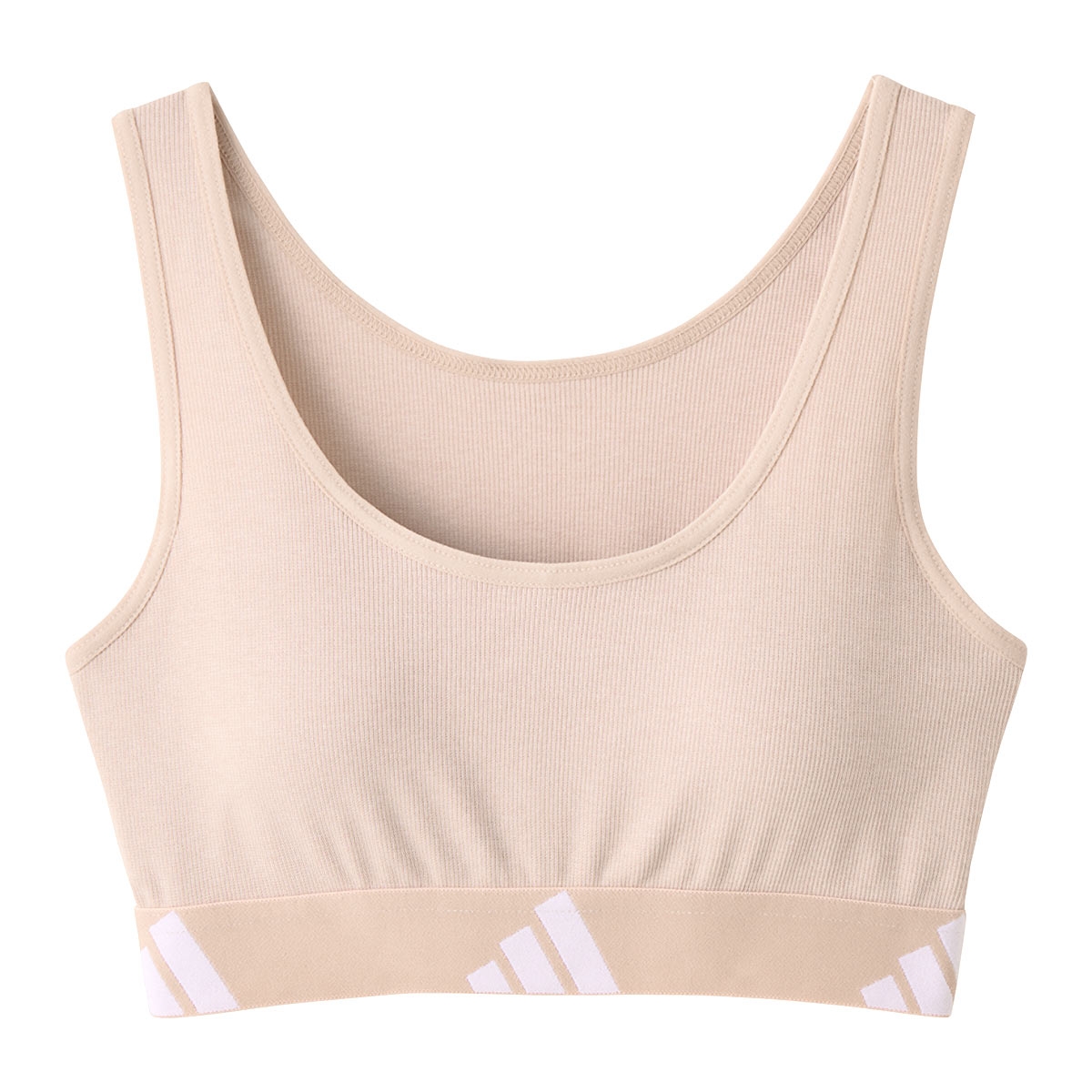 アディダス ガールズ リブ ハーフトップ 綿混 キッズ ジュニア ノンワイヤー ブラジャー adidas スポーツ(BE-ベージュ-150)
