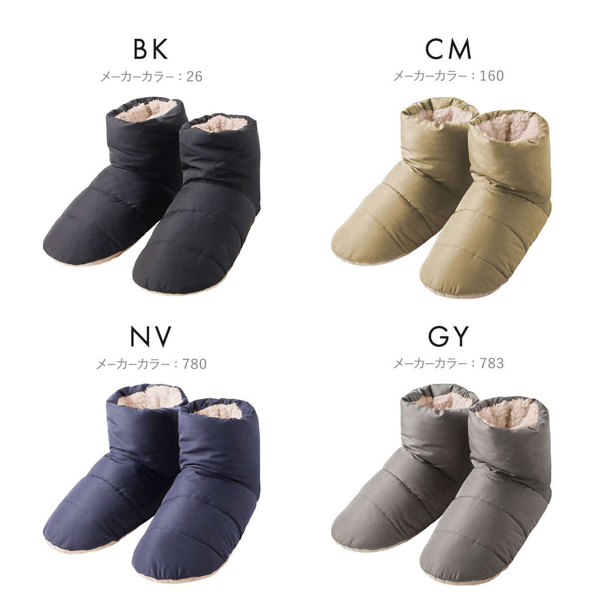 | 素 材 | 表地:ポリエステル100% 中わた:ポリエステル90% 合成繊維(アクリレート系)10% 足底:ポリエステル100%(ポリウレタンコーティング) |