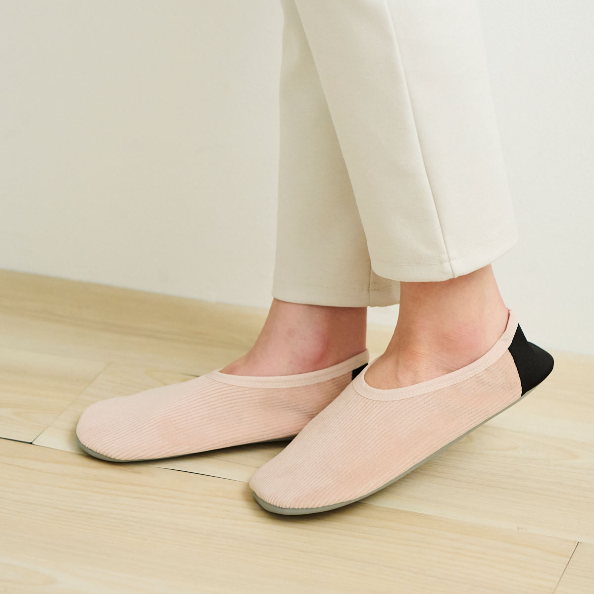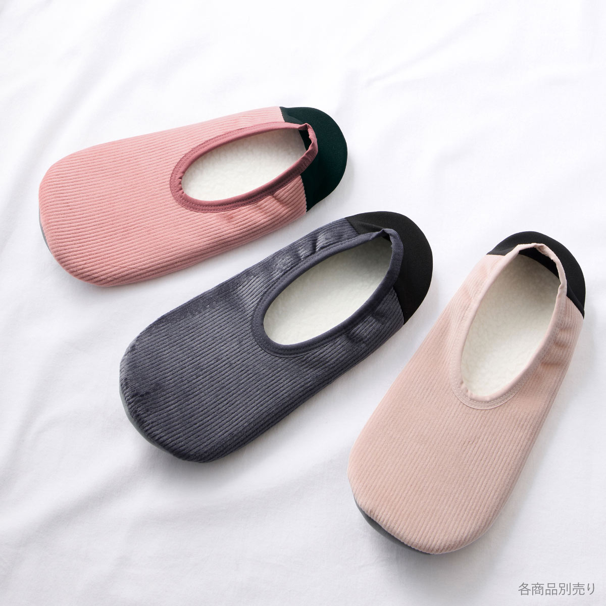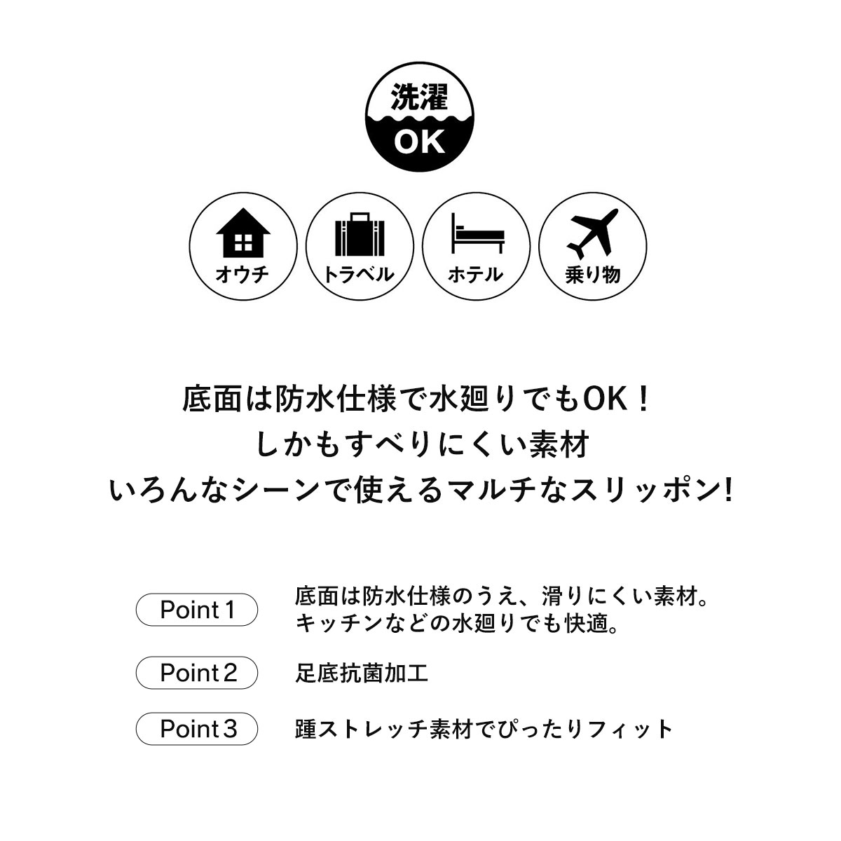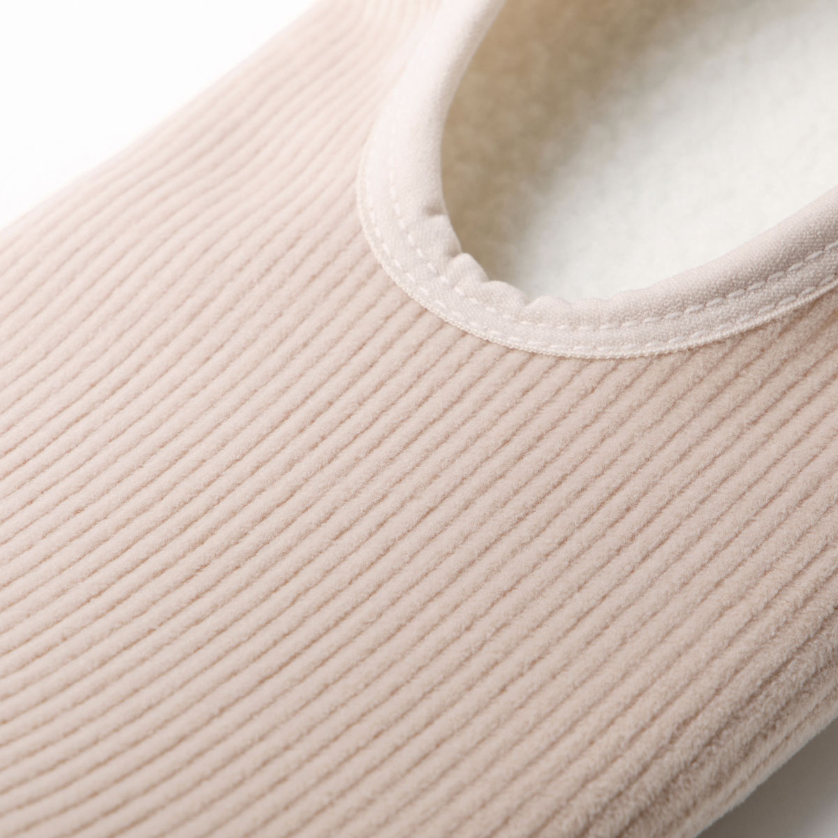足底に防水仕様のすべりにくい素材を採用した、コーデュロイタイプのおうちスリッポン。キッチンなどの水まわりでも安心してご着用いただけます。内側にはボア素材を使用して温かさをキープし、こだわりの足底クッションが快適な履き心地を実現。洗濯もできるので、いつでも清潔にご使用いただけます。
