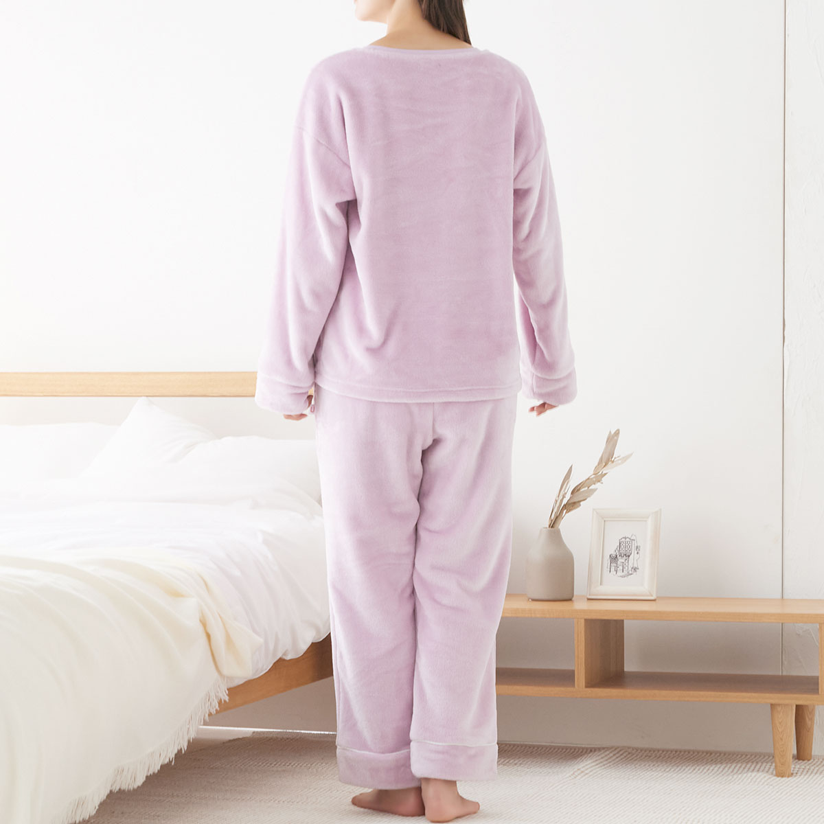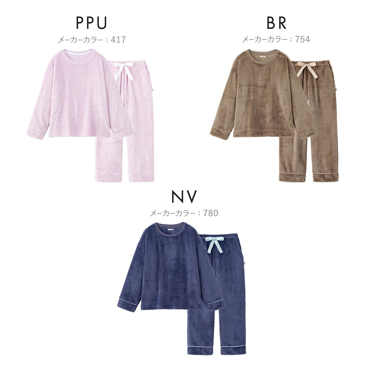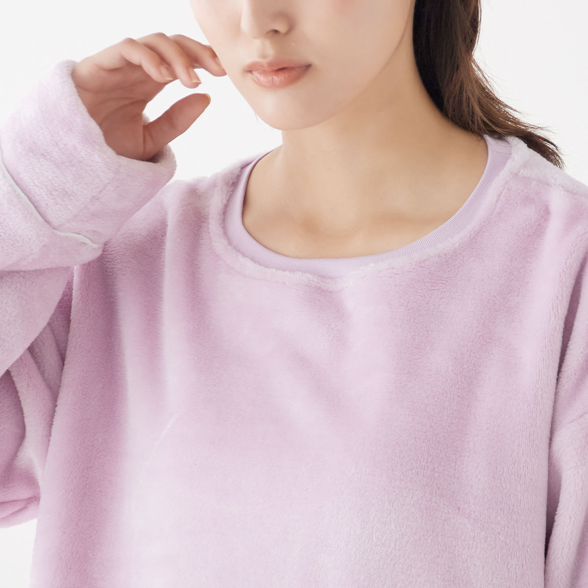 なめらかな肌触りのフリース素材は、着た瞬間から心地よい暖かさに包まれます。空気を含んで保温性を高めるので、暖房を抑えたい日や、朝晩の冷え込みが気になる季節にぴったりです。締め付け感のないゆったりとしたシルエットで、ストレスなくリラックスできます。トップスはドロップショルダーで肩周りの動きが楽ちん。パンツは、ウエストがゴム仕様なので、就寝時も締め付けを感じにくいです。ベーシックなデザインで、幅広い年代の方におすすめです。