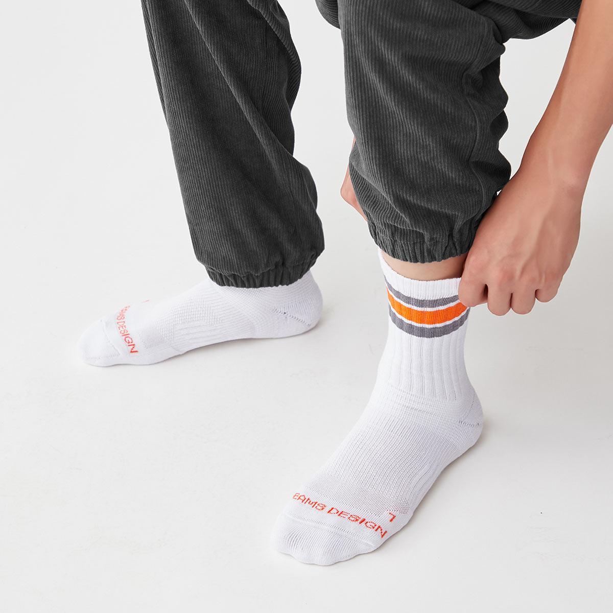ビームスの象徴でもあるオレンジカラーをあしらったラインソックス。土踏まずを持ち上げ荷重を分散させるアーチサポート設計で快適な履き心地。動いた時のズレ・ずり込みも防止します。