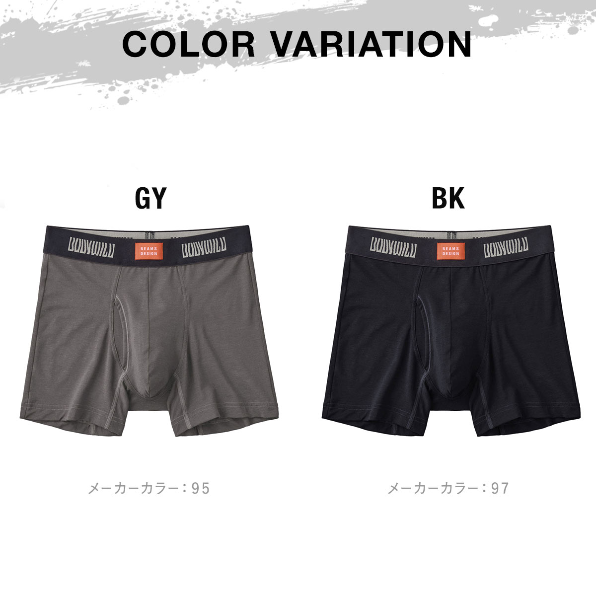 BEAMSのイメージカラーでもあるオレンジブランドタグをウエストゴム中央にあしらった、感度の高いデザインのボクサーパンツです。ボディには大注目の吸放湿テクノロジー、アセドロンを搭載。ムレを軽減し快適にご着用いただけます。
