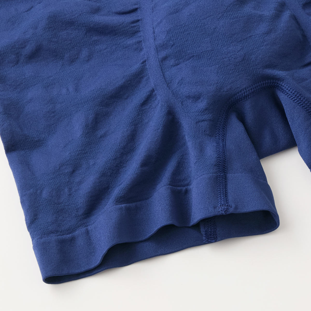 カラダの凹凸に自然となじむ立体成型+縫い目の少ないシームレス仕様。全体的に低圧で圧力の高低差も少ないため、均一でソフトなフィット感を実現。従来品に比べ、腰周り、裾&股下の圧力が軽減されています。伸縮性の高いストレッチ素材で動きやすさ◎です。