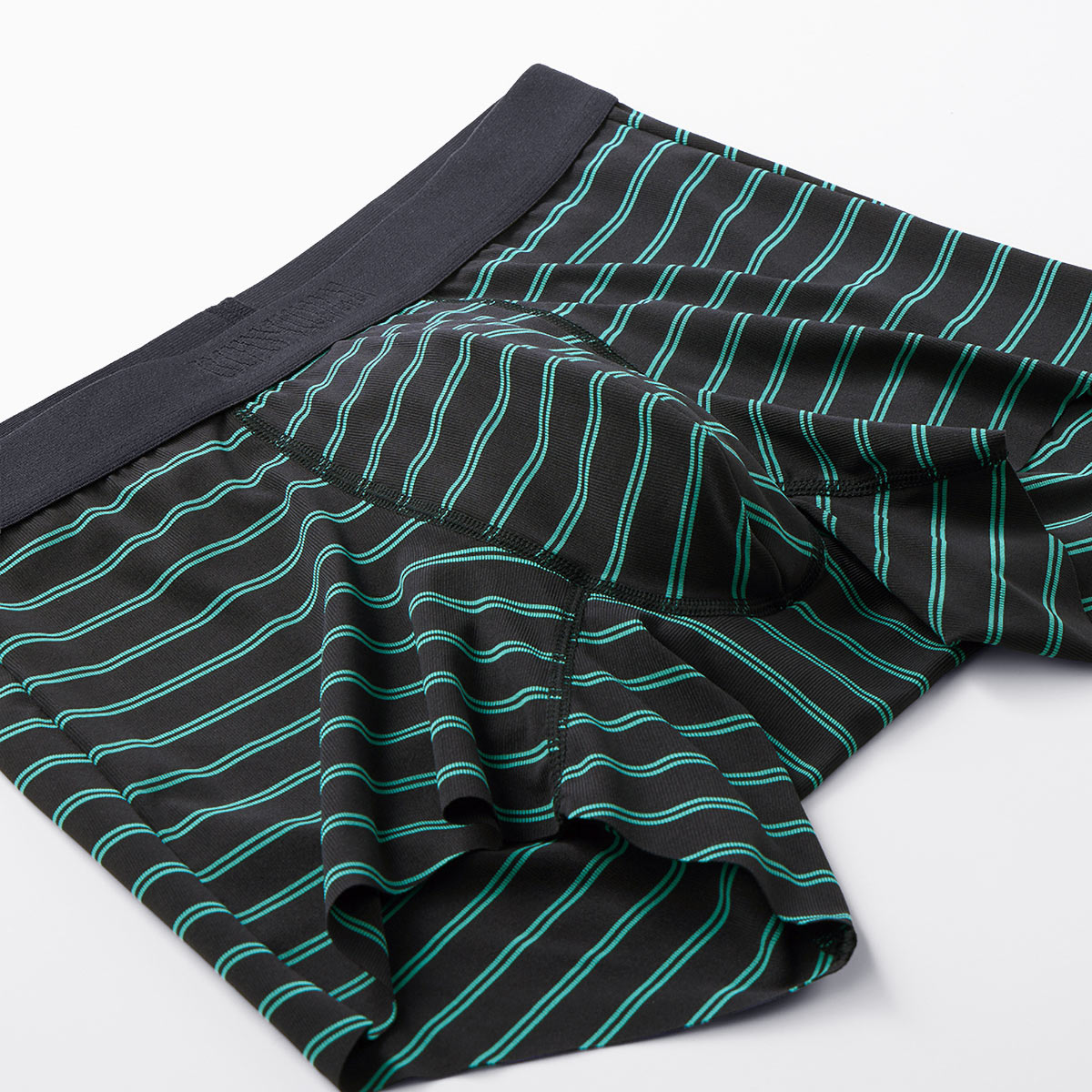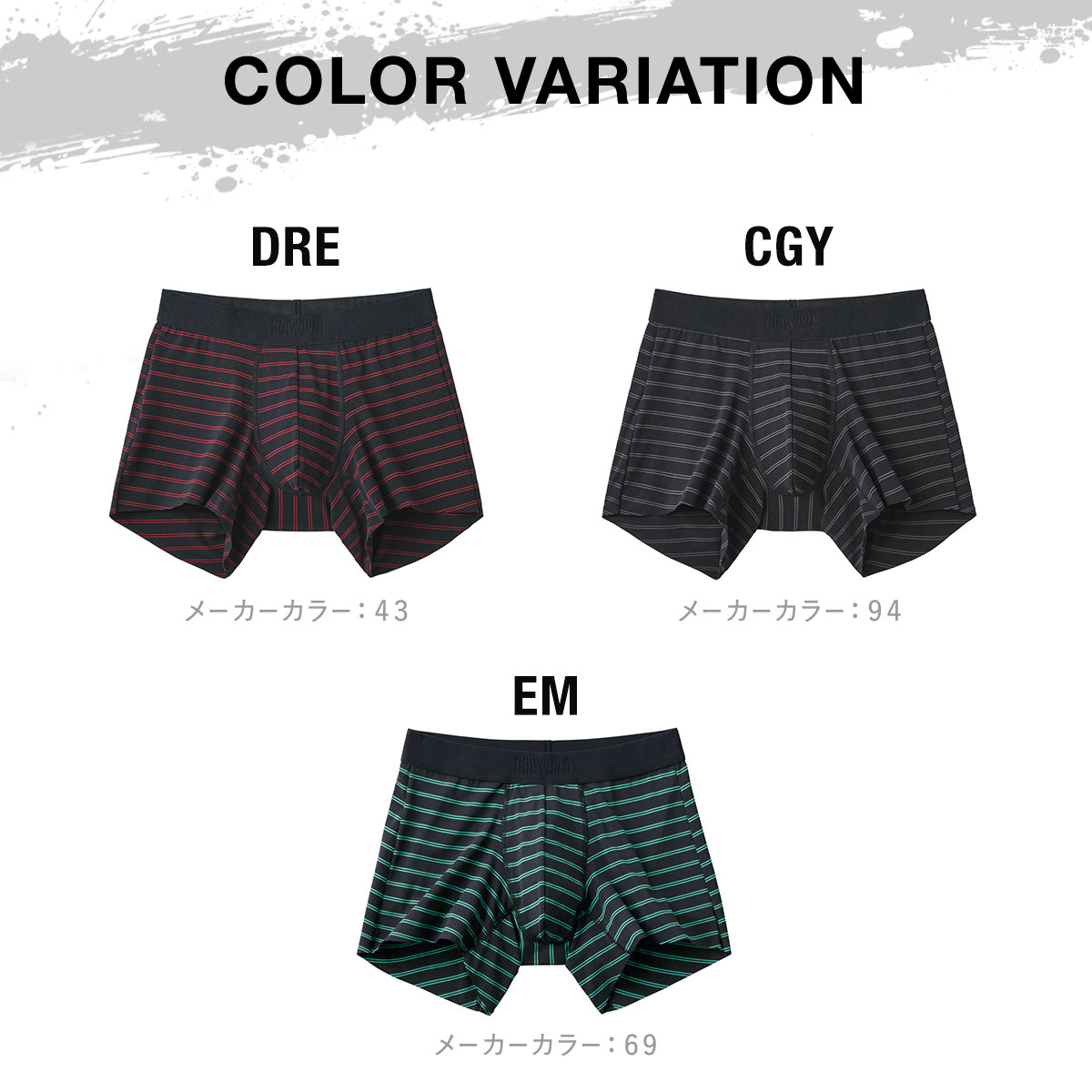 「BLACK DESIGN」の名の通り、ブラックカラーをベースにしたクールでスタイリッシュなデザインのボクサーパンツ。裾部が切りっぱなし(カットオフ)仕様だから、ごろつきにくくスッキリご着用いただけます。