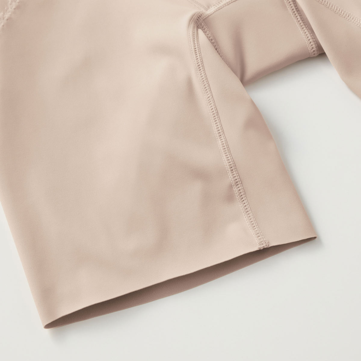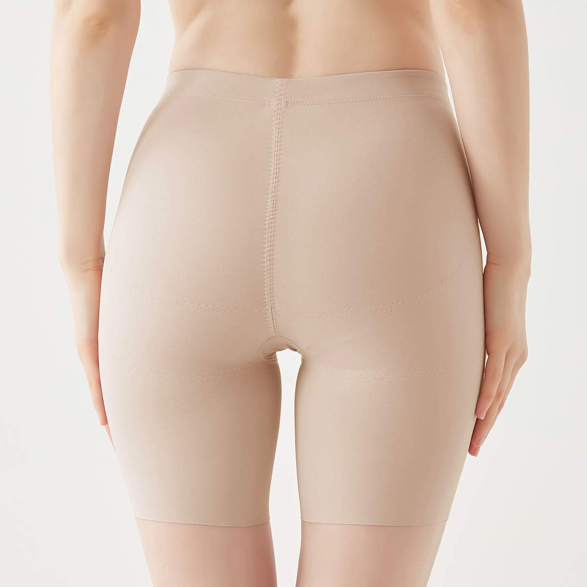 お腹もヒップも、ラインすっきり。気になる部分をしっかり整えるロングガードル。お腹とヒップをグイッとおさえる立体設計。ひざ上まで覆うロング丈で、太ももからヒップまでしっかりサポート。裾は段差が出にくい切りっぱなし(カットオフ)仕様で、アウターにもひびきにくい設計に。ストレッチ性のあるパワーネットで締めつけすぎず長時間の着用も快適です。