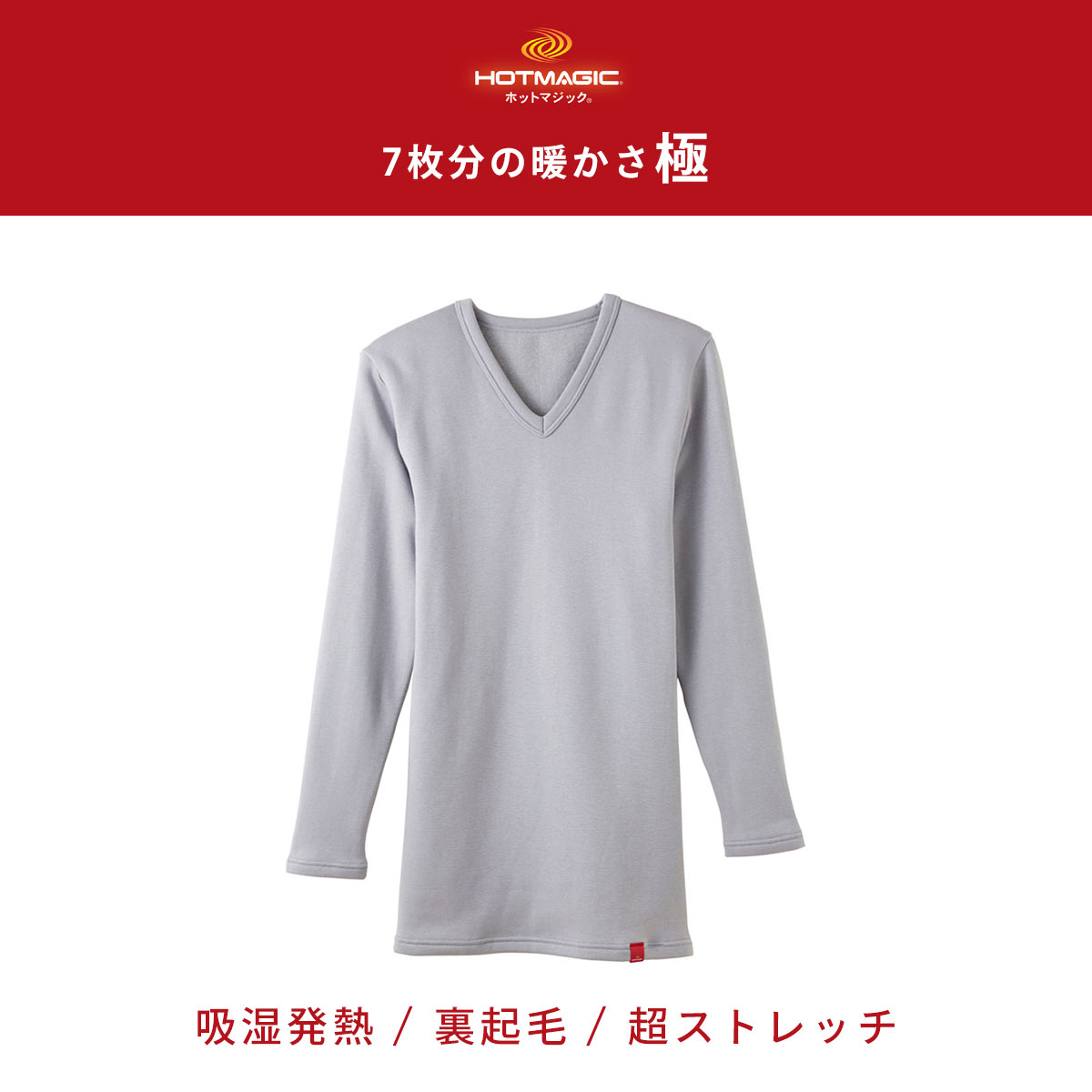グンゼ GUNZE  ホットマジック HOTMAGIC 極 長袖 シャツ Vネック あったか インナー 裏起毛 発熱 厚手