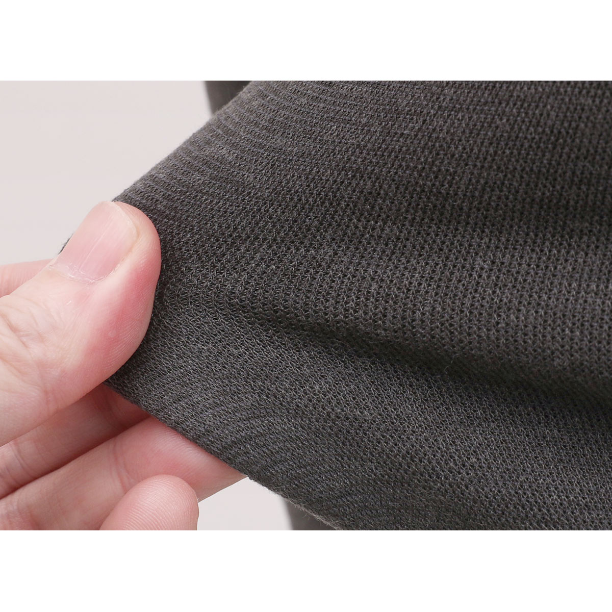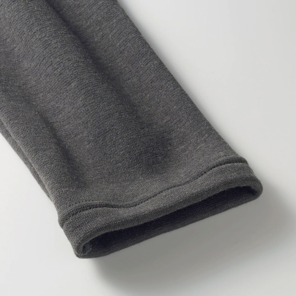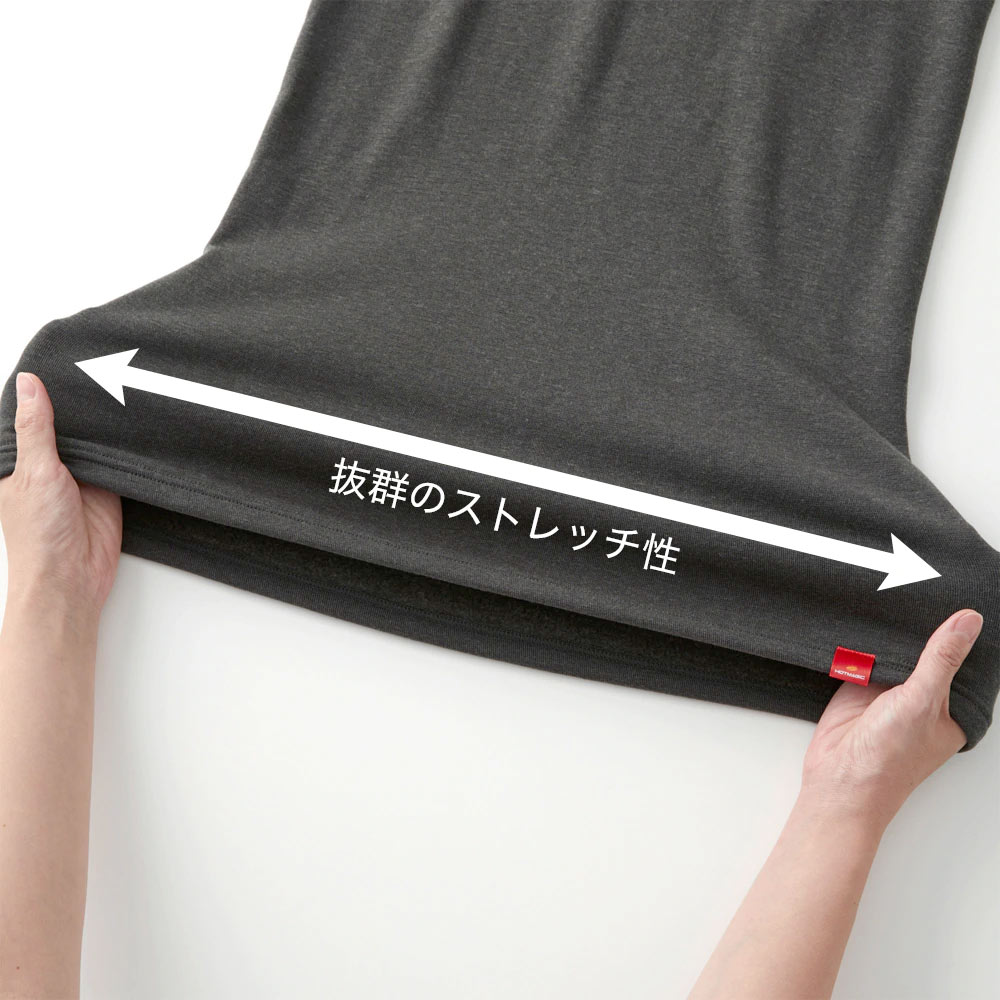 高密度の起毛とシャーリング加工を施すことで、保湿力と極上の肌ざわりを実現。超厚手生地でありながら、脇に縫い目がなく、よく伸びて動きやすい。身体の動きになじむ抜群のストレッチ性が特徴です。