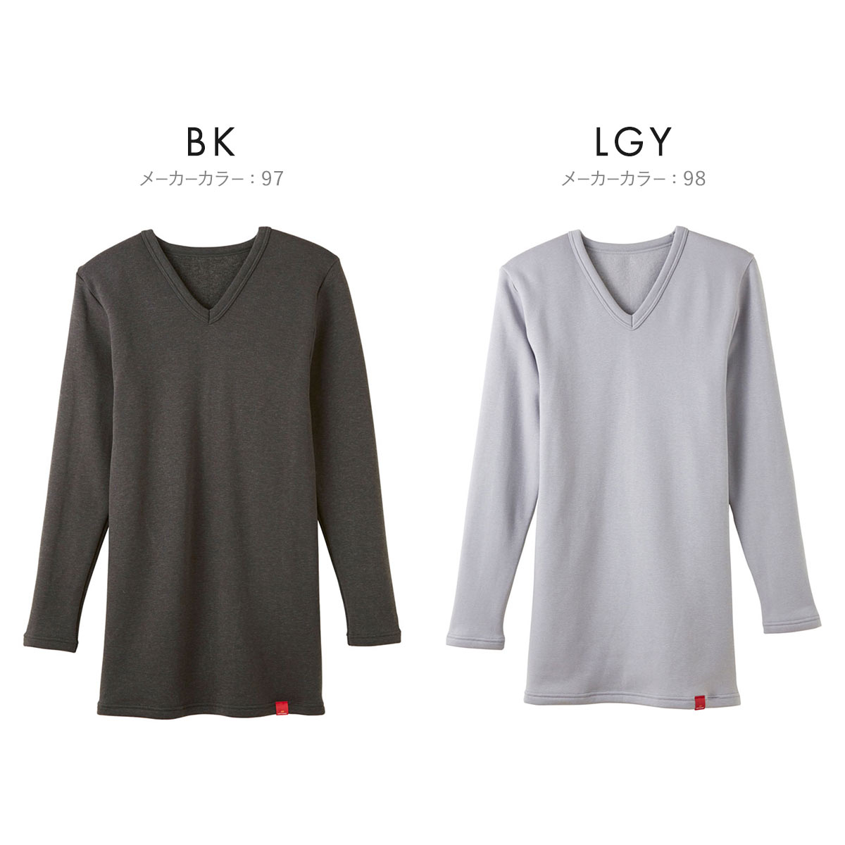 グンゼ GUNZE  ホットマジック HOTMAGIC 極 長袖 シャツ Vネック あったか インナー 裏起毛 発熱 厚手(LGY-薄グレー-M)