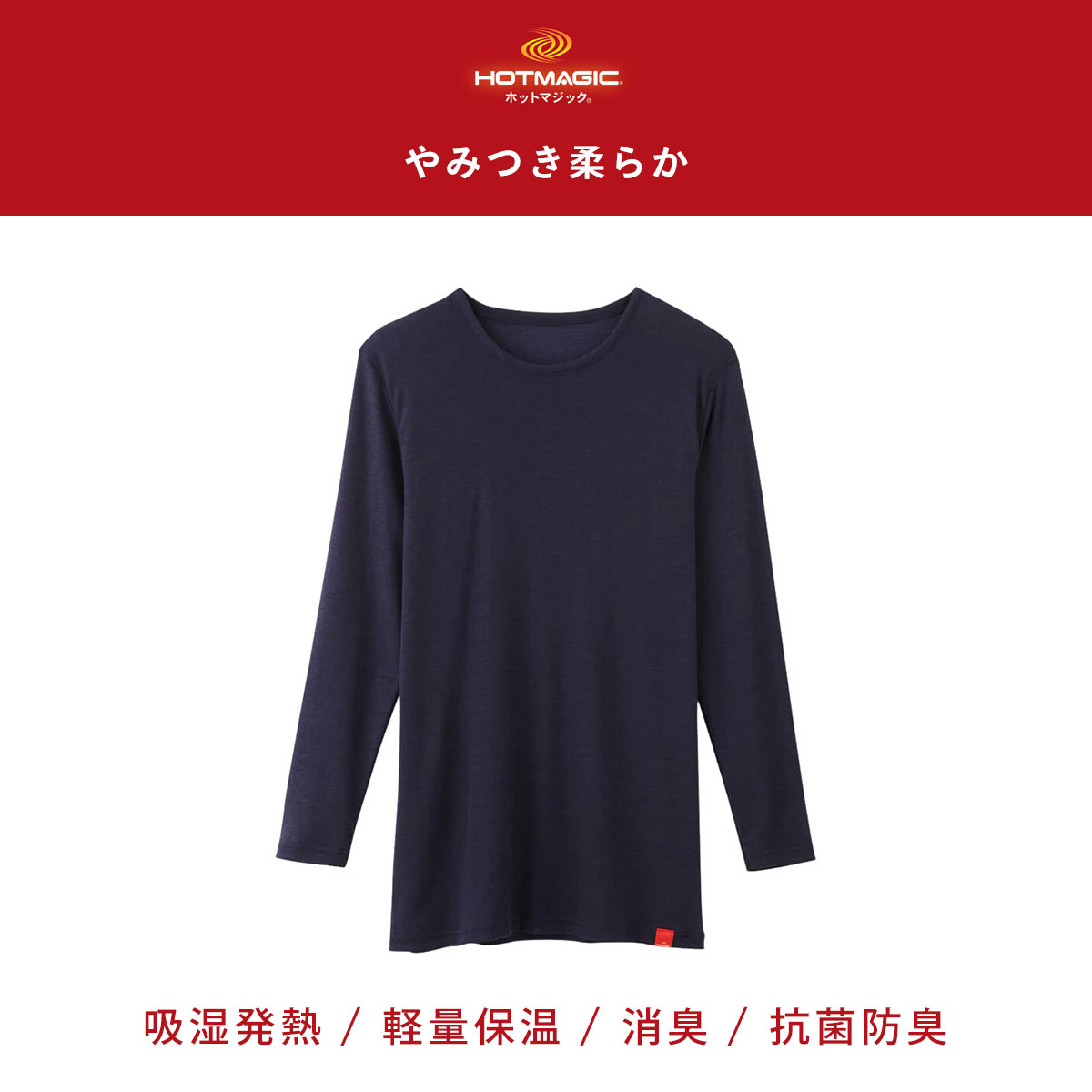 HOT MAGIC 軽くて、暖かくて、なめらかな風合いのクルーネック9分袖シャツ!