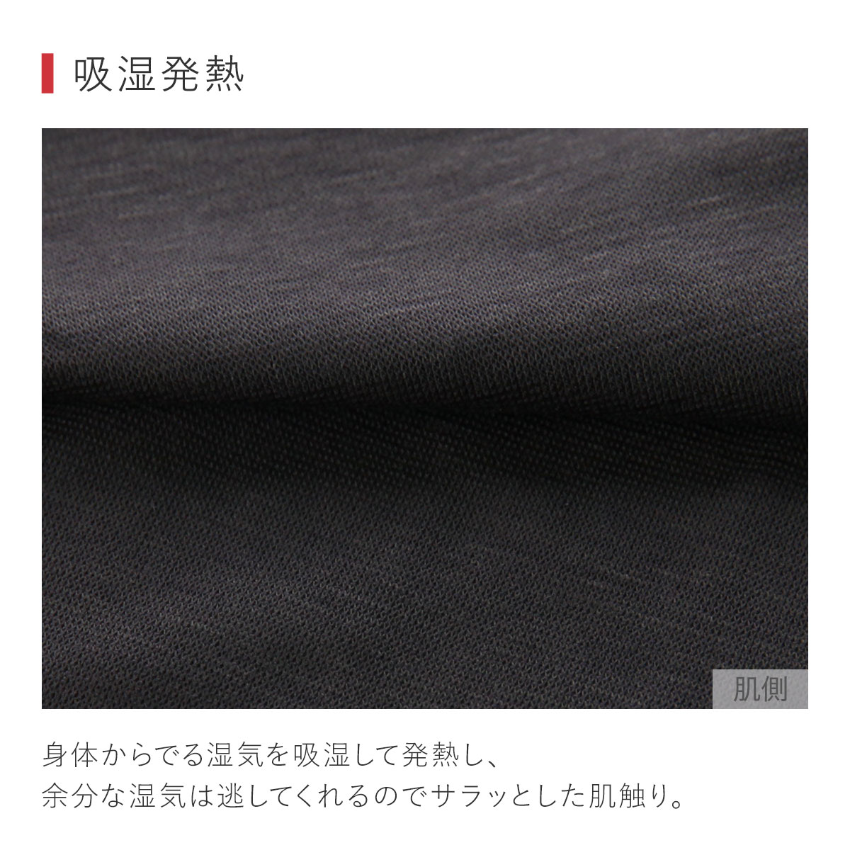 カラダから出る湿気を吸湿して発熱し、余分な湿気は逃してくれるのでサラっとした肌触り。