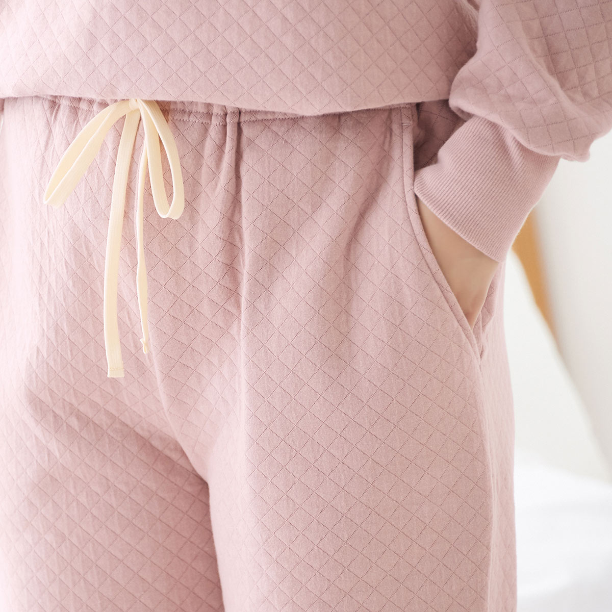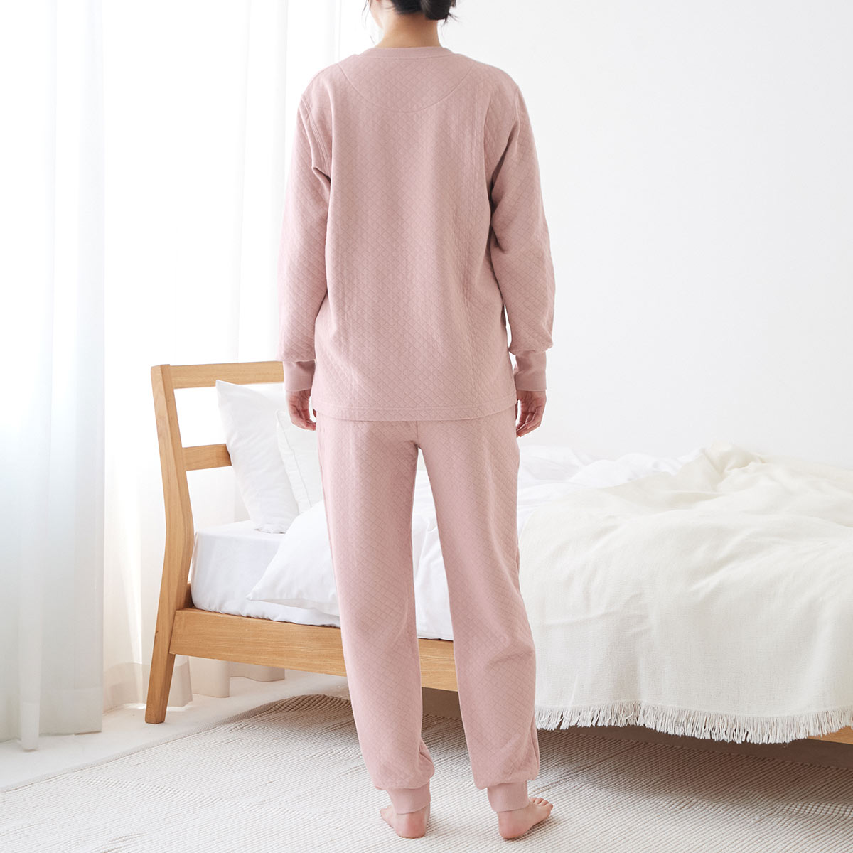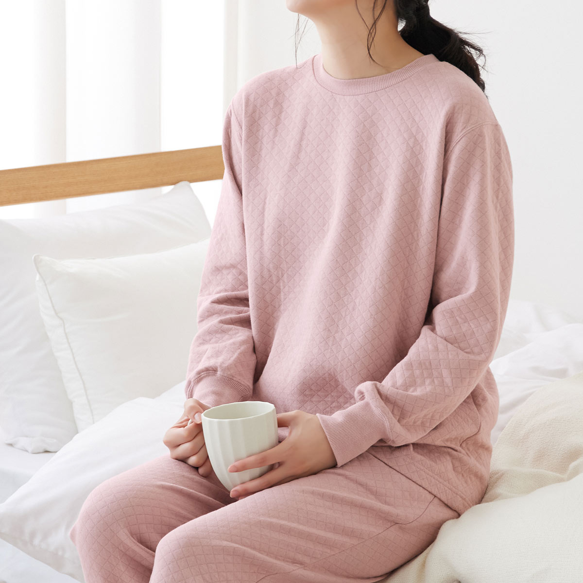 生地には、保温力のあるダイヤキルト素材を採用し、真冬の冷気から体をしっかりとガードします。さらに、背中の当て部分はグンゼ独自の改質レーヨンを使用した吸放湿テクノロジーにより、かいた汗を素早く吸収し、濡れ戻りを抑えてムレを逃がすため、暖房の効いた部屋や寝汗をかいた後でも、肌側はいつでもさらっと快適。心地よい暖かさと、不快な汗を忘れる快適性を兼ね備えた、冬の快眠を約束する一着です。
