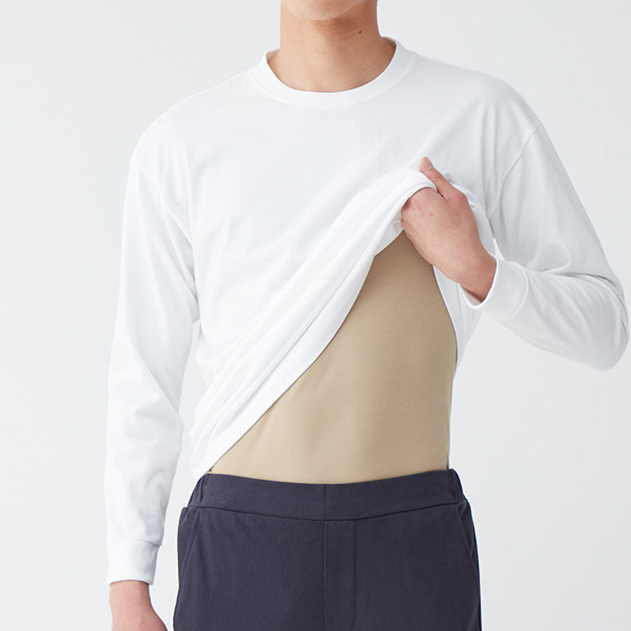| 仕 様 | ・日本製 ・切りっぱなし(襟ぐり・袖口・裾) ・脇パッド付き ・保湿成分配合 ・襟ぐり広め(ボートネック対応) |