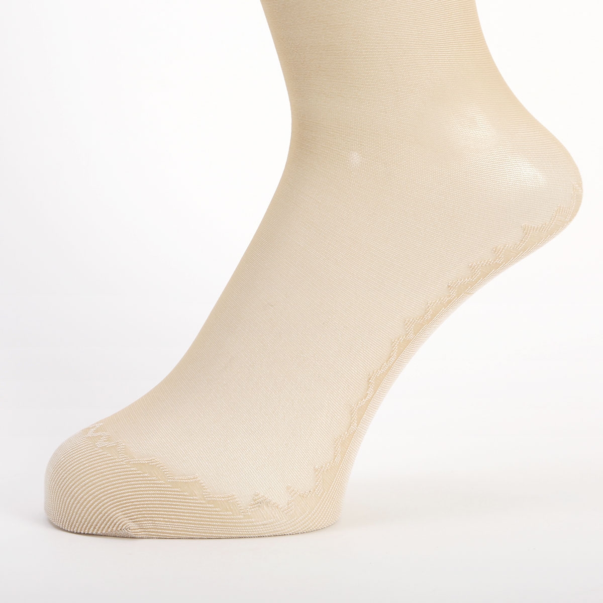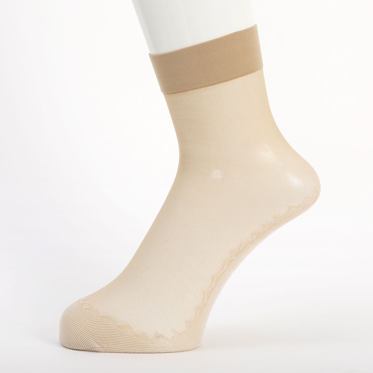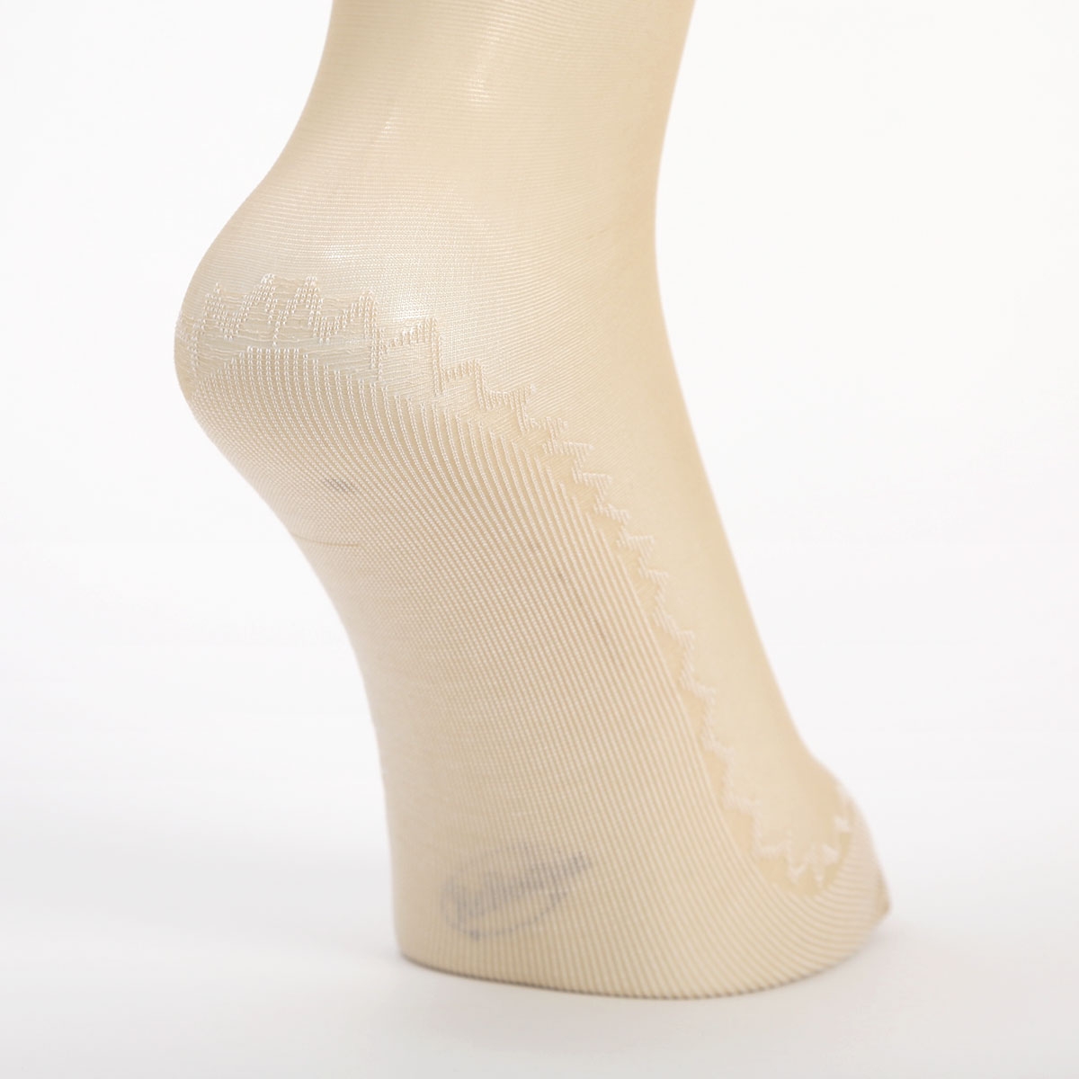 甲とレッグ部はストッキング生地、つま先からかかとまではワイドなコットンソール仕様で汗やムレをおさえてさらっと快適な履き心地です。ソール部分はふちレースで見えても可愛いデザインになっています。
