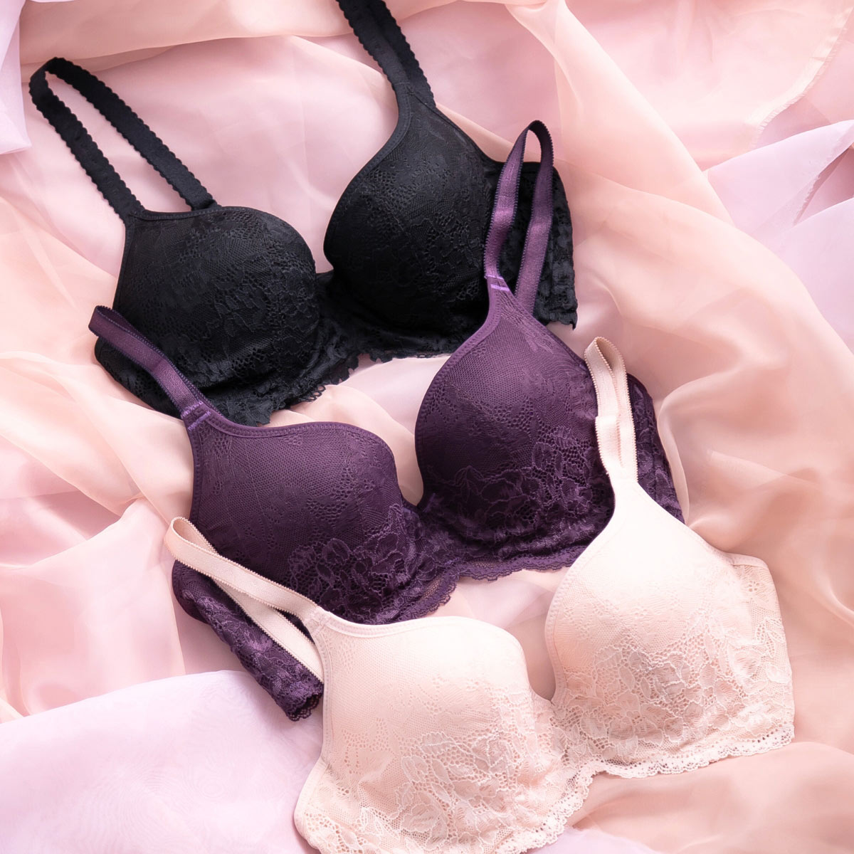 繊細なレースを贅沢にあしらった、上品なインビジブルワイヤー(ワイヤーが外から見えない)デザイン。