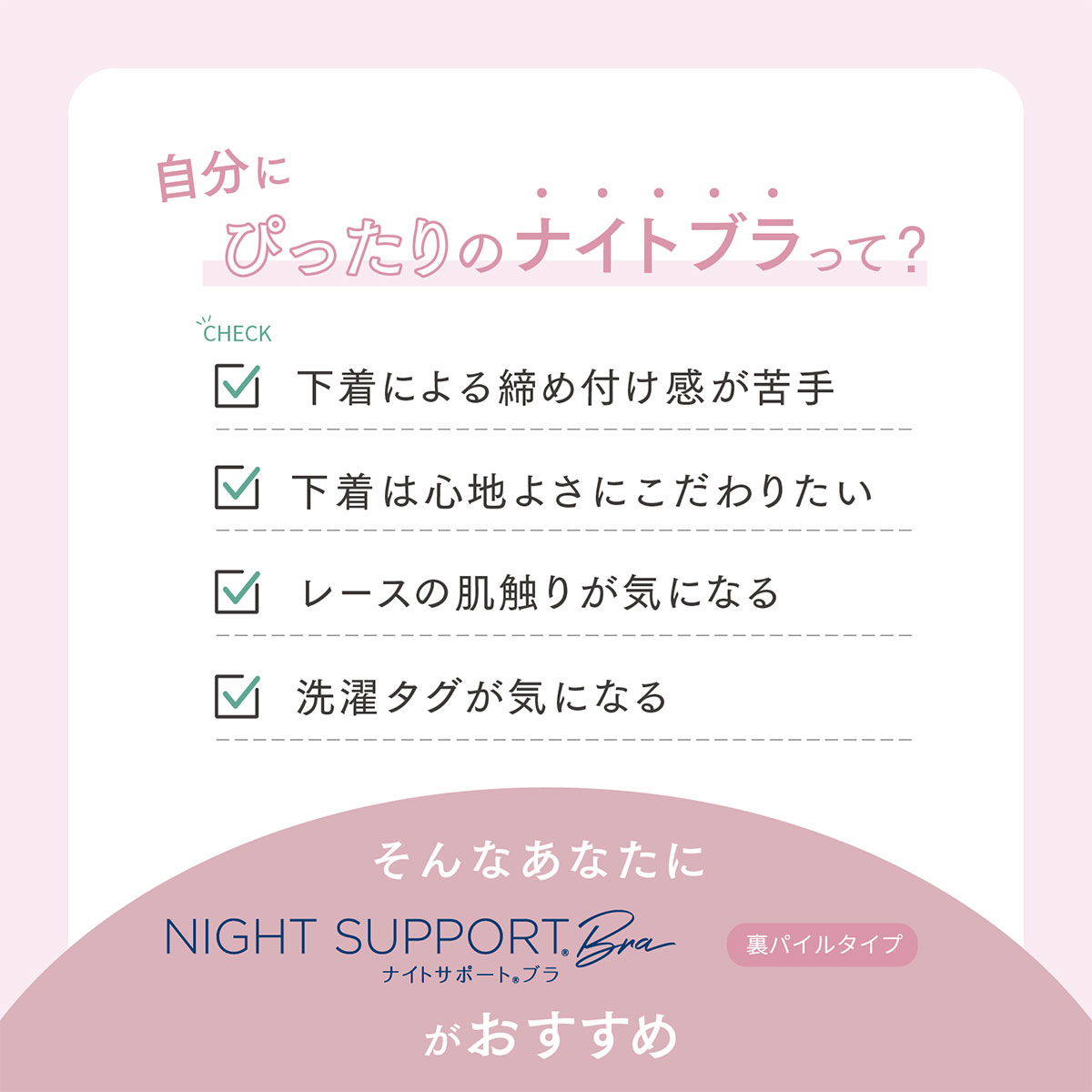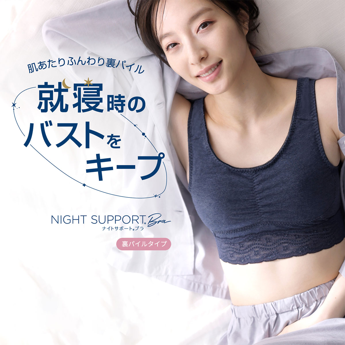 ルシアンの就寝中のバストをやさしくキープするナイトブラ。着け心地重視の裏パイルタイプです。