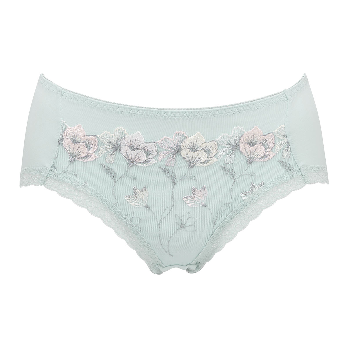 大人の女性におススメの上品で華やかなレースデザイン。今季は爽やかで透明感のあるカラー展開です☆裾周りにはストレッチレースがあしらわれ、くいこみにくくアウターにひびきにくい仕様です。
