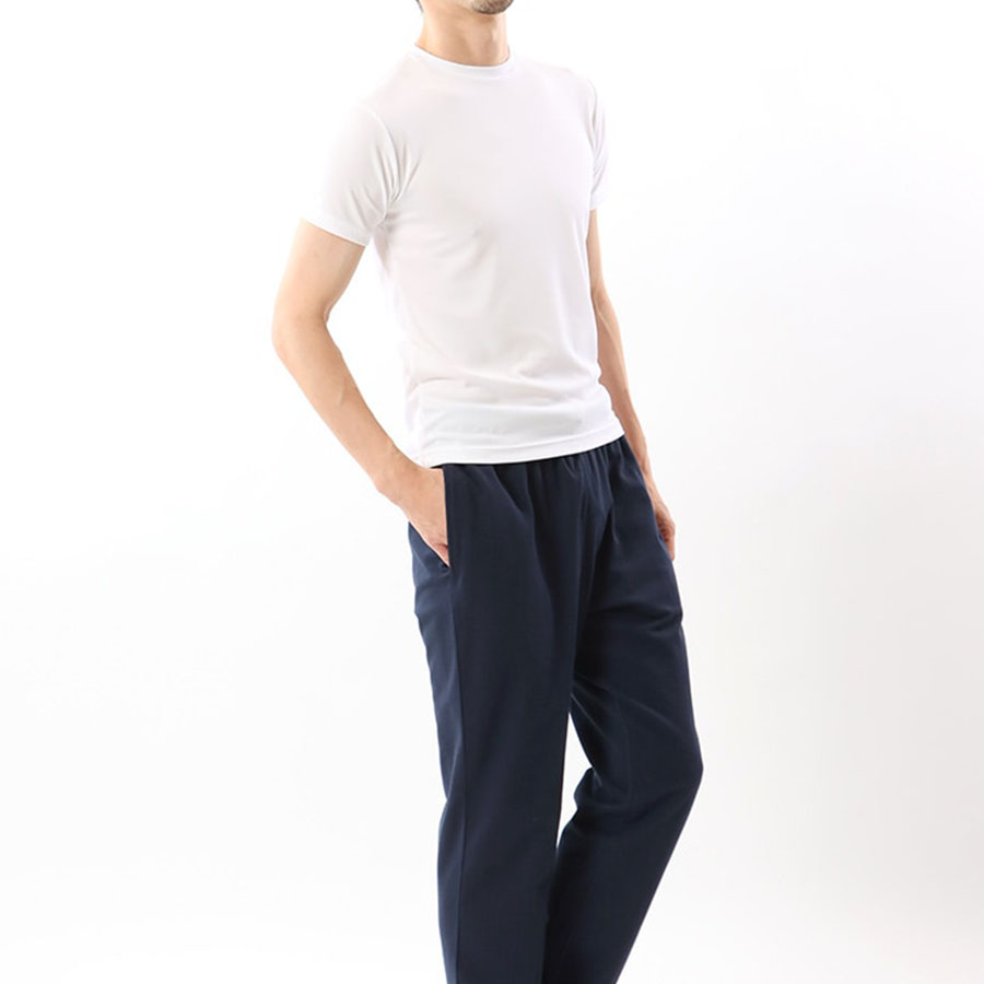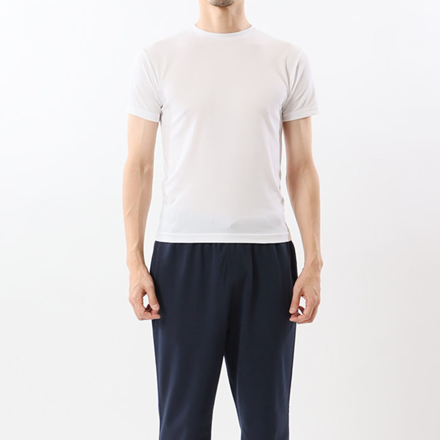 襟元のゴロつき、不快感を解消するタグレス仕様や、脇に縫い目の無い丸胴仕様でストレスフリーな着心地に。洗濯後も型崩れしにくい、襟から肩にかけたテープ補強つき。