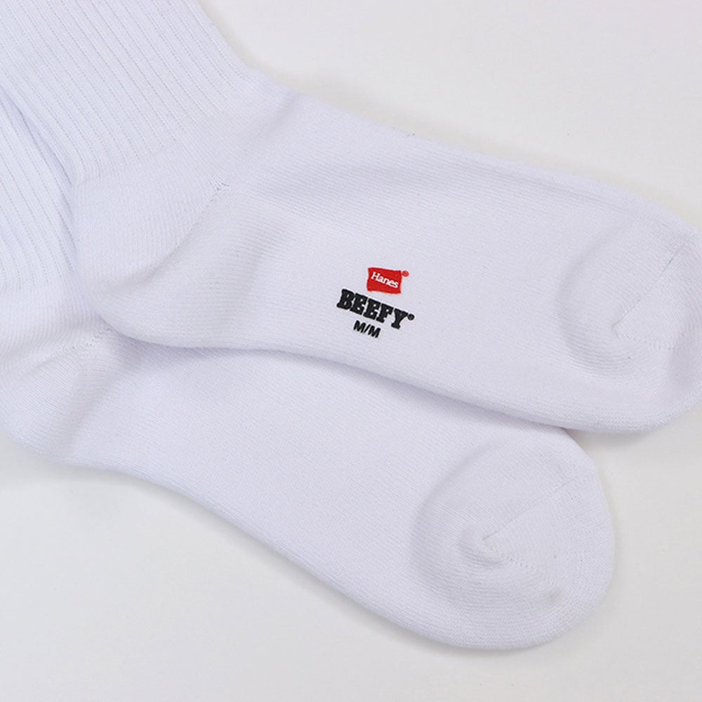 ヘインズ Hanes ビーフィー BEEFY フルレングス ソックス 2足組 メンズ ハーフパイル クルー丈 HMSBW001(WH-ホワイト-25-27cm)