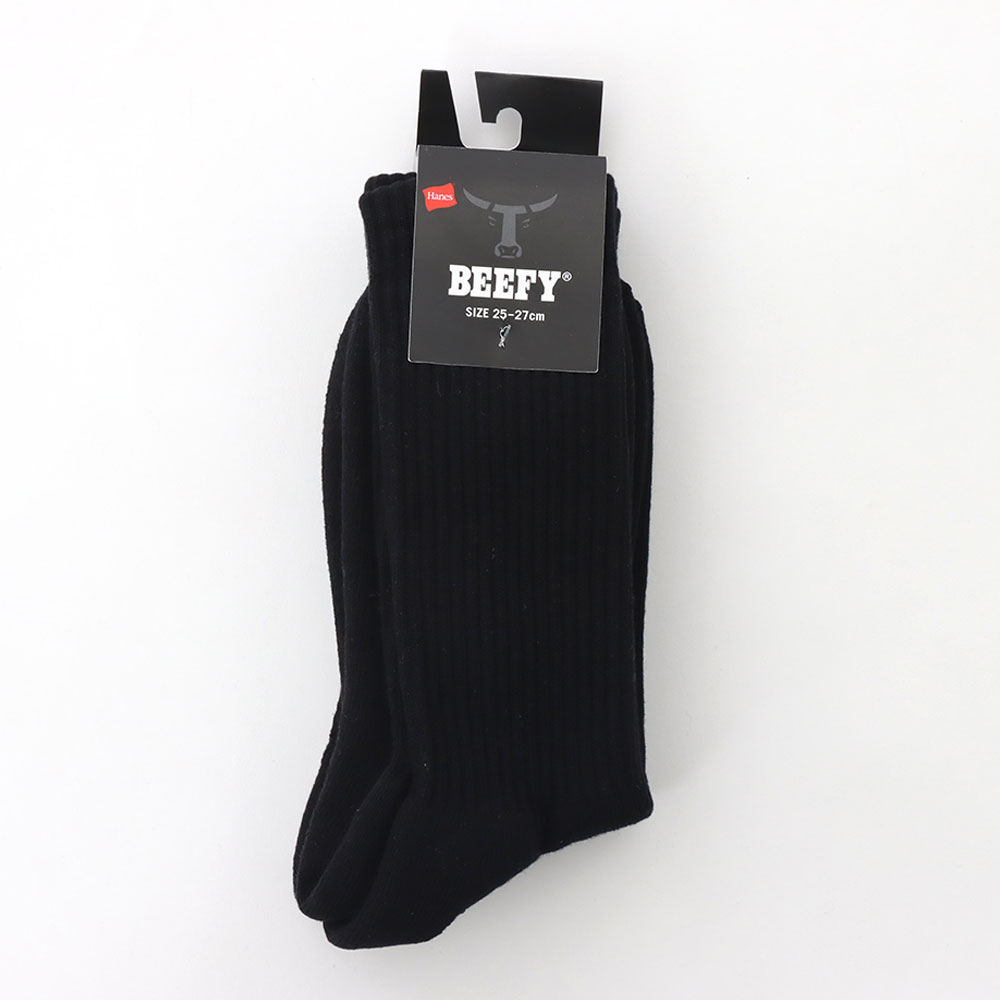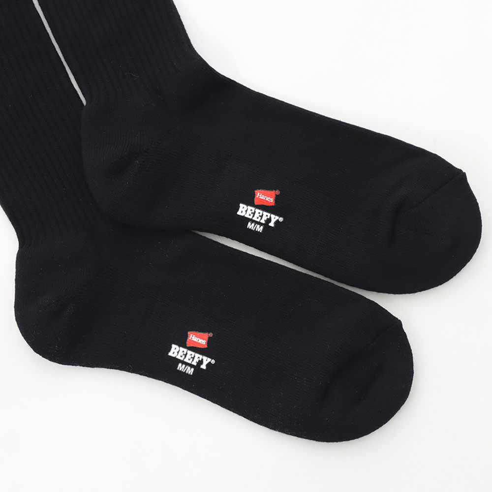 ヘインズ Hanes ビーフィー BEEFY フルレングス ソックス 2足組 メンズ ハーフパイル クルー丈 HMSBW001(BK-ブラック-25-27cm)