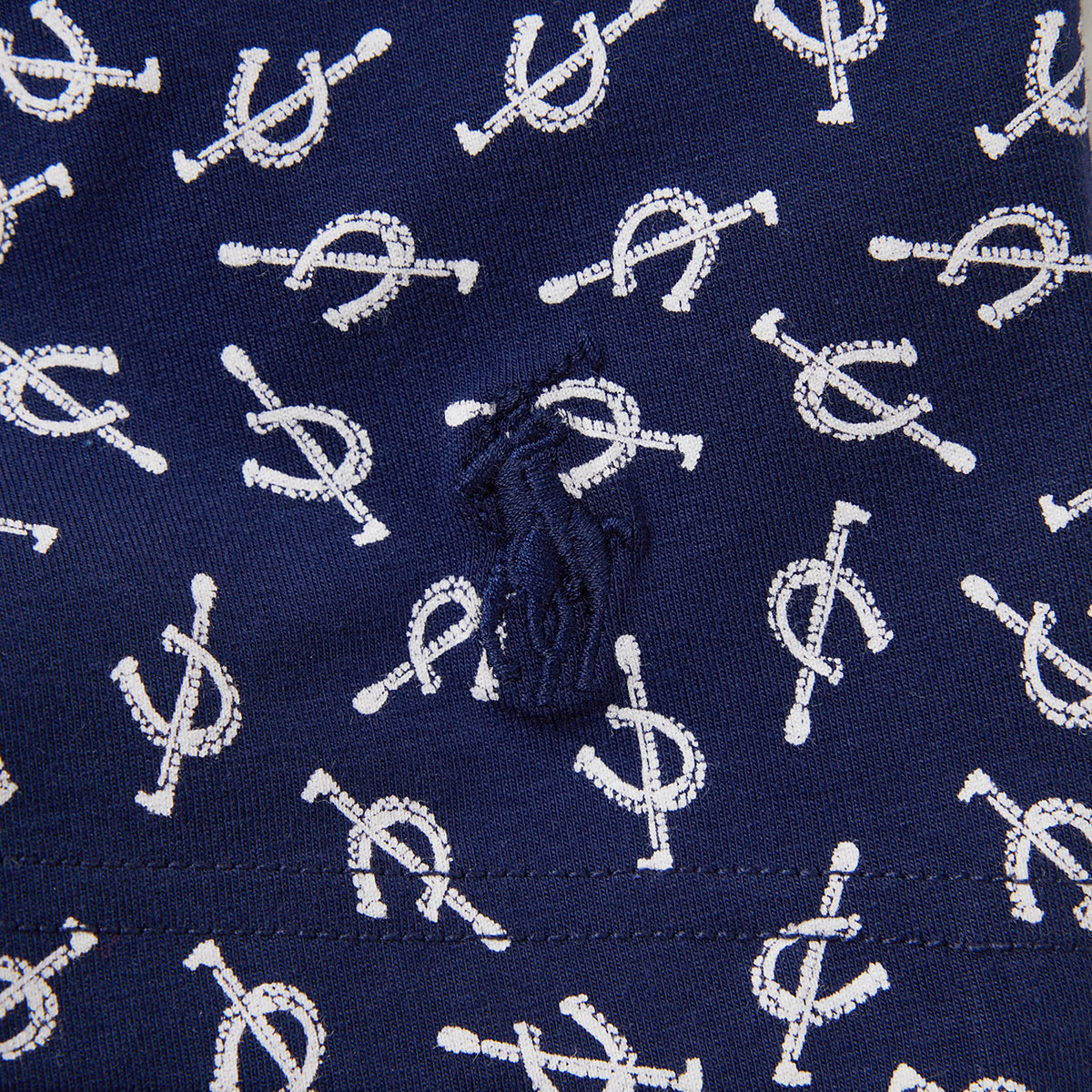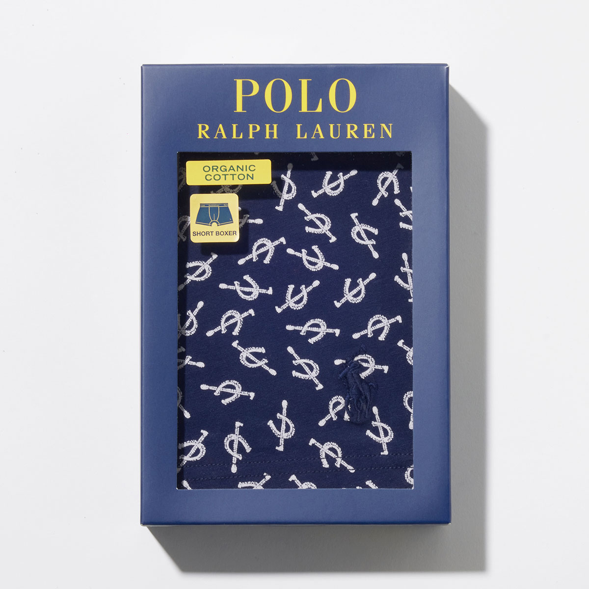 オーガニックコットンを使用したコットンストレッチショートボクサーです。柔らかな質感と伸縮性を兼ね備えた快適な着心地が特長。接ぎ目のないヒップパネルや股下部分にマチを入れた構造によって、快適な着用感をもたらすとともにスタイリッシュなファッション性も演出します。ネイビーベースにホースシューモチーフをオーバープリントした、ギフトにも最適なアイテムです。前閉じ仕様。