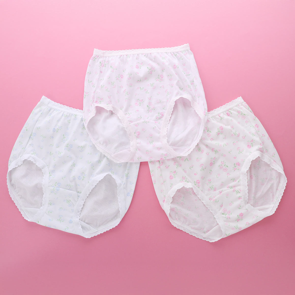 お腹もヒップもすっぽリ包む綿100%素材花柄ショーツ3色組