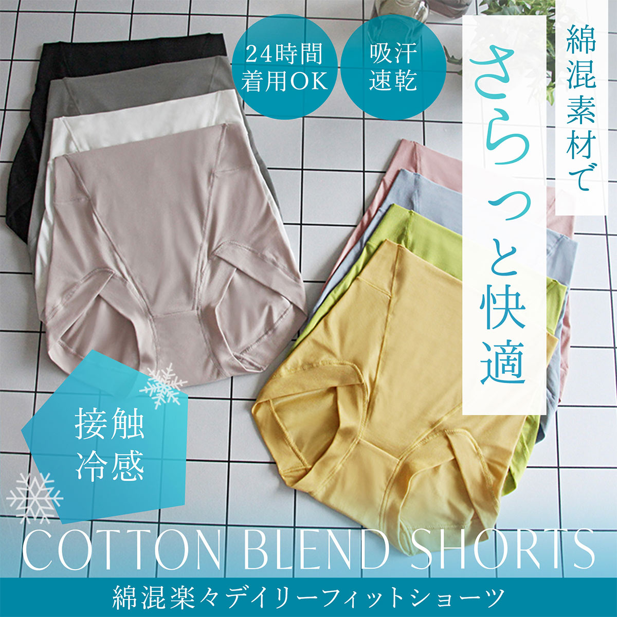 ブラデリス 綿混楽々デイリー フィットショーツ S-5L 深ばき ソフト おなかおさえ 吸汗速乾 接触冷感 おしりすっぽり 美尻