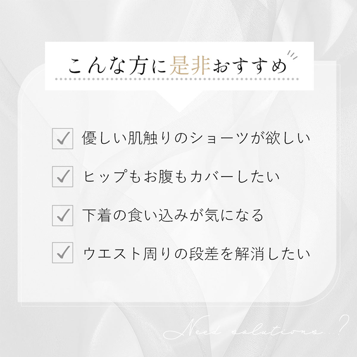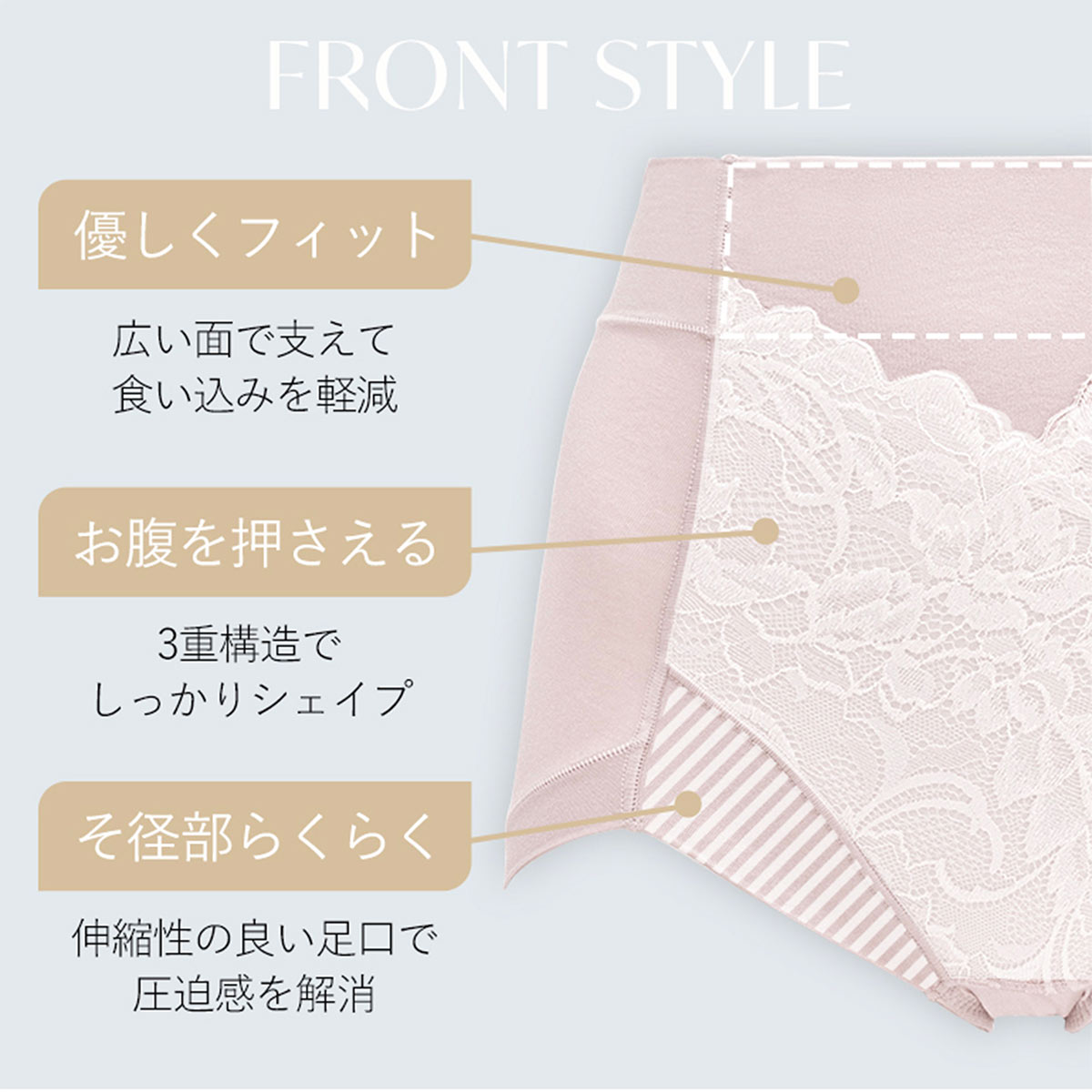 ショーツの食い込みが気になる方、お腹もヒップもサポートしたい方、締めつけ感が苦手な方にオススメです!