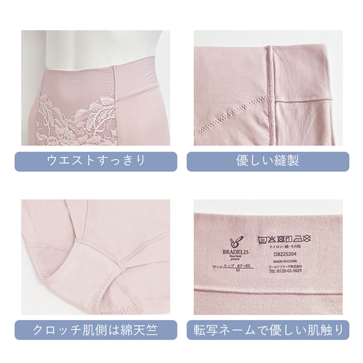 ※身生地ナイロン綿ベア天竺の混用率:ナイロン45%・綿40%・ポリウレタン15% ※クロッチは綿100%天竺 |